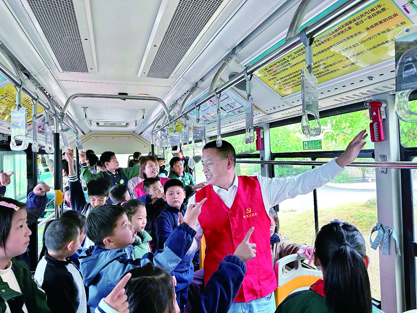 通讯员 徐燕 文/摄 近日,市公交19路“儿童友好专线”公交车开进婺城区雅畈镇中心小学,为同学们带来一场知识性、趣味性与体验感兼具的安全文明教育课。在公交车厢里,志愿者以“身边的公交安全”为主题,结合孩子步行、乘车的高频场景,以“提问互动+情景模拟”的方式展开讲解,进一步增强孩子们的安全意识。