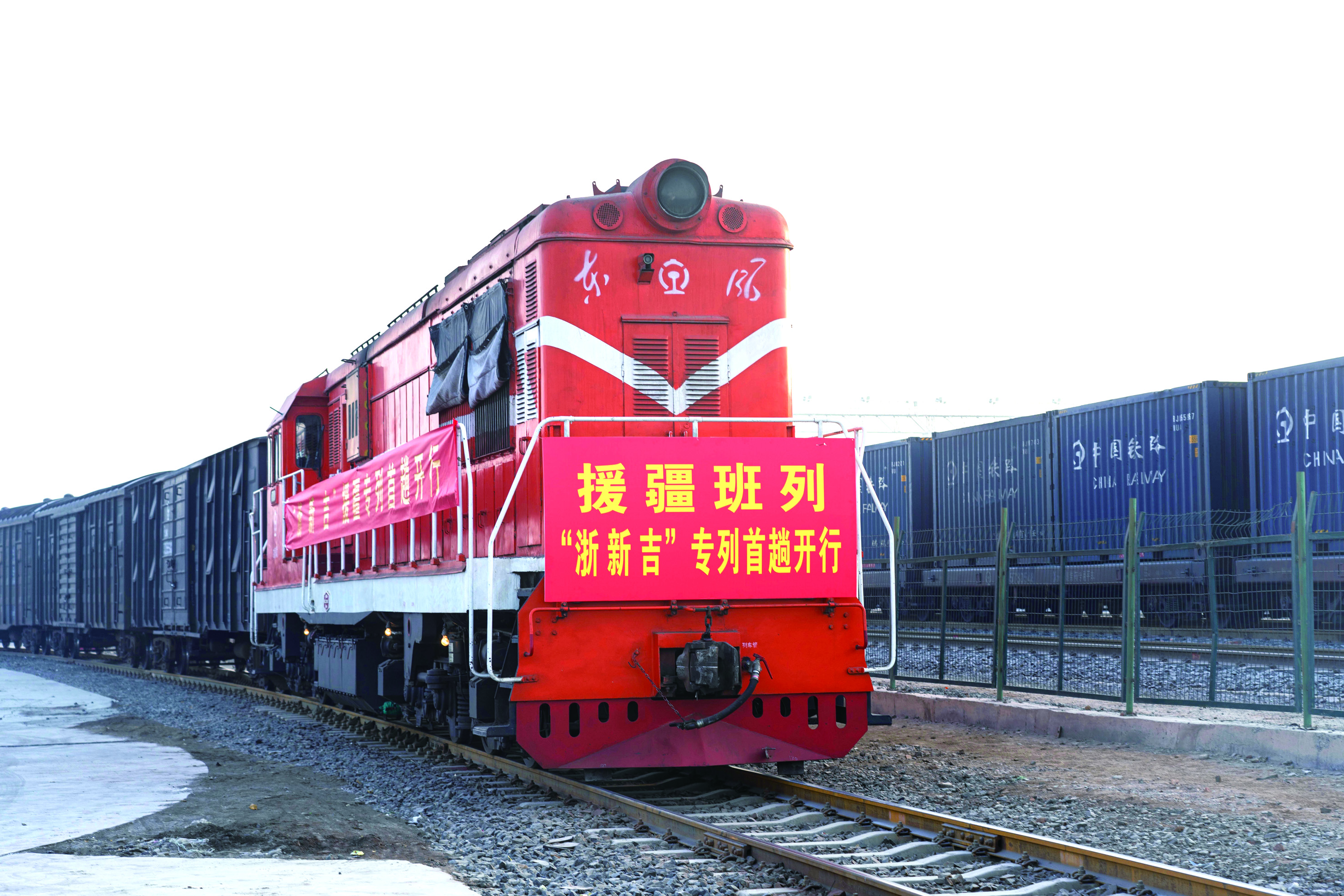 通道实现“双向赋能”:向西,“浙新吉”专列经阿克苏分拨至南疆口岸,打通了浙江直抵中亚的南疆通道;向东,“援疆班列”将温宿的棉纱、石材等特色产品运往长三角,架起区域合作的钢铁桥梁。2023年以来,通道已开行班列140列,输送货物15.7万吨,货值达37.6亿元。