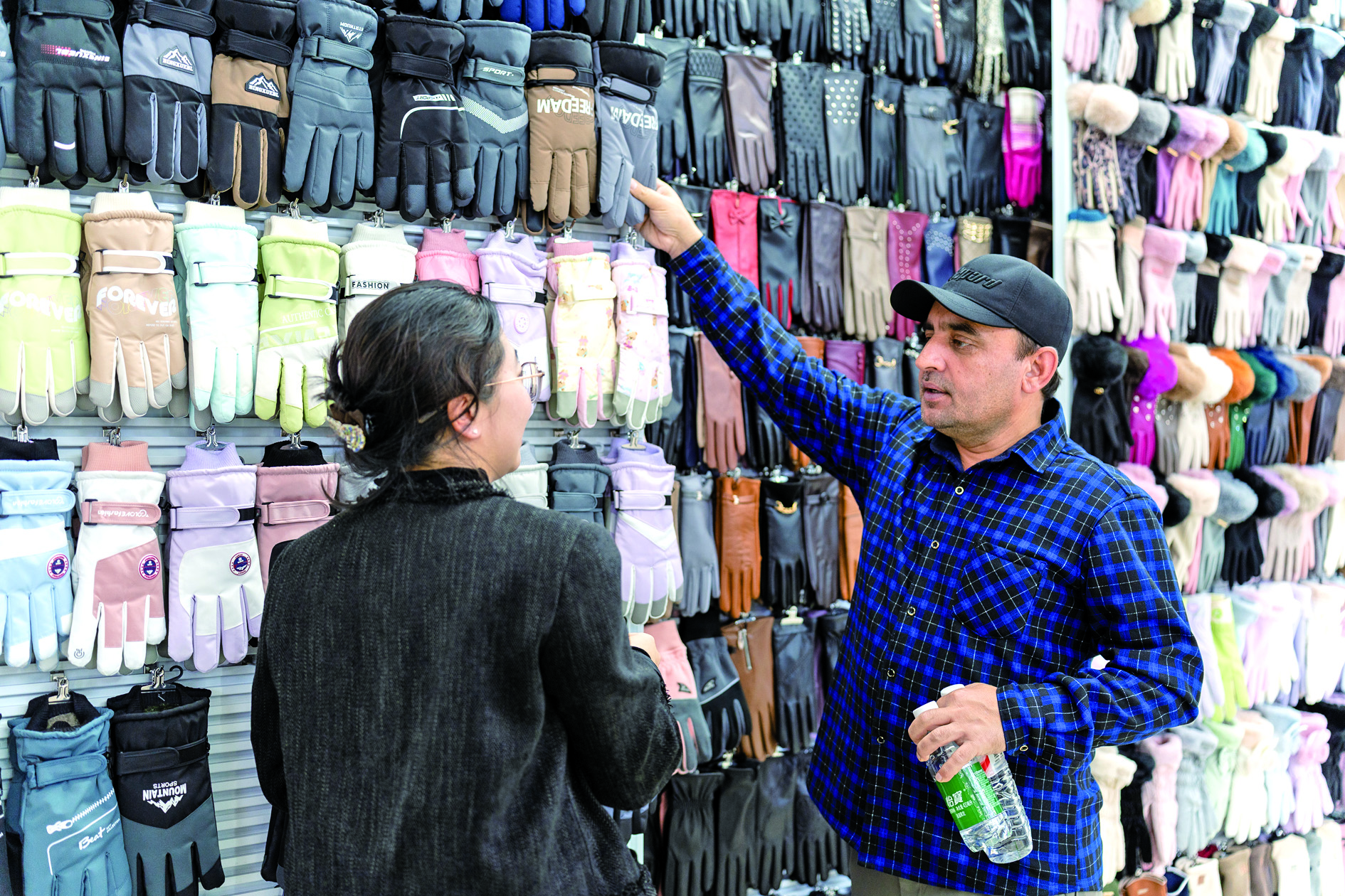 记者 楼冀阳 文/摄 11月10日,义乌国际商贸城四区帽子、手套等保暖用品专区人潮涌动,采购商们手拎货袋,穿梭于各家店铺间忙着采购,呈现一派火热景象。 随着气温降低,义乌国际商贸城各类保暖用品销量大幅攀升。据统计,10月,围巾销售额环比上升374%,热水袋销售额环比上升3000%,保暖衣销售额环比上涨1100%,帽子销售额环比上涨17.5%。