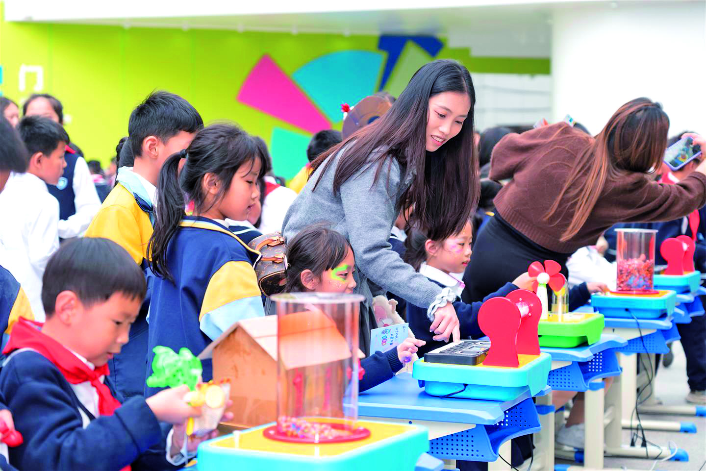记者 陈斌 文/摄 11月10日,一场以“科学好玩,好奇市集”为主题的科技节活动在永康一小学举行,激发孩子们的探索热情。在实验超市环节,他们拿着通过日常优秀表现兑换的“好奇币”,体验与AI机器人下象棋、挑战“电路迷宫”等趣味科学小实验。