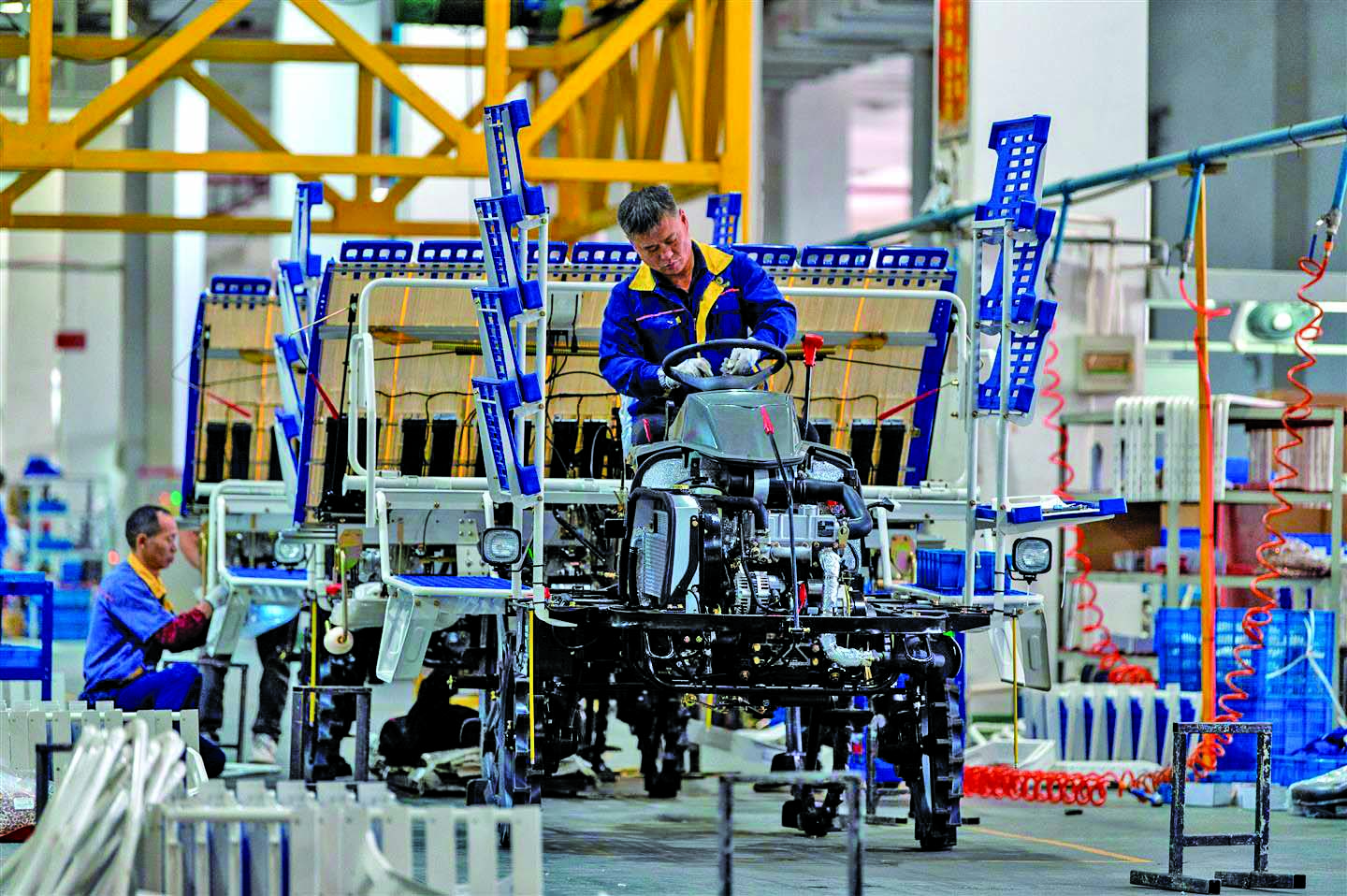 记者 胡肖飞 文/摄 11月11日,在位于永康市的浙江星莱和农业装备有限公司生产车间内,工人们正全力以赴忙生产赶订单,一台台高速插秧机有序下线。 自今年广交会与武汉农机展以来,该公司生产的高速插秧机已揽获近4000台订单。目前,该公司正开足马力,确保优质产品如期交付,为明年农耕生产提供装备保障。