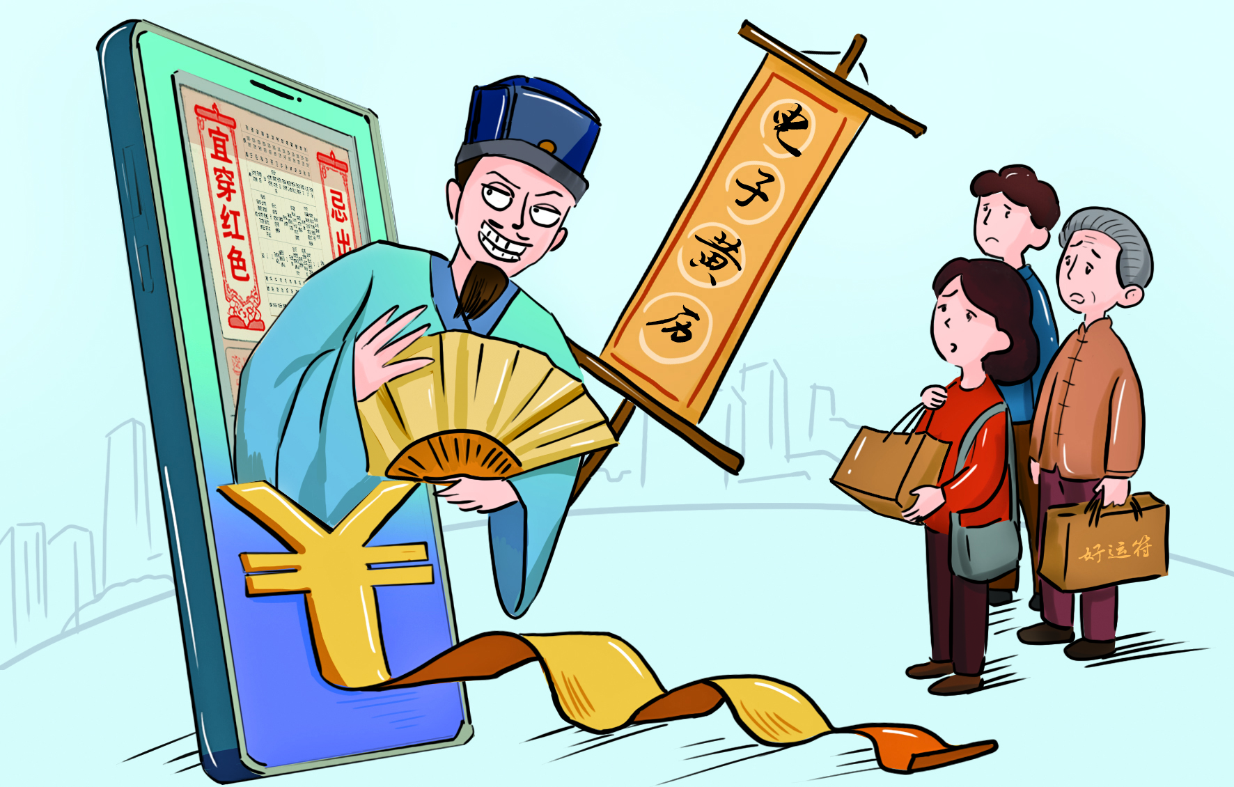 所谓“电子黄历”,实为利用焦虑心理进行营销的话术陷阱。它以传统为名,行带货之实,本质是虚假宣传。此类内容不仅误导用户,更侵蚀网络生态。清朗的网络空间不容投机牟利者肆意破坏,平台、监管部门需双管齐下,消费者也应该擦亮眼睛。 (黄露 图/文)