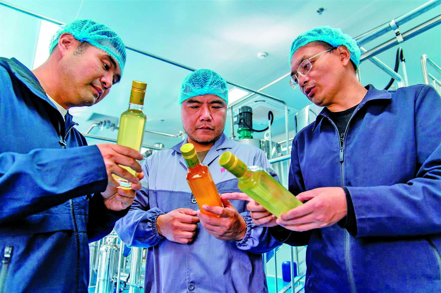 记者 胡肖飞 文/摄 昨日,在东阳市虎鹿镇香榧加工中心,市农科院科技特派员和工人在查看刚刚下线的香榧油。 东阳香榧种植面积达8.9万余亩,年产干果1200余吨,产值3.2亿元。近年来,虎鹿镇在市农科院科技特派员指导下,构建“科技+平台+产业”模式,引入仿手工剥壳机、自动化炒制线、低温冷榨机等智能装备,开发香榧月饼、糕点、冷榨香榧油等多元产品,附加值提升3至5倍,推动香榧产业全链升级。同时带动农户就近就业,形成“科技兴产、产业增收”的良性循环。