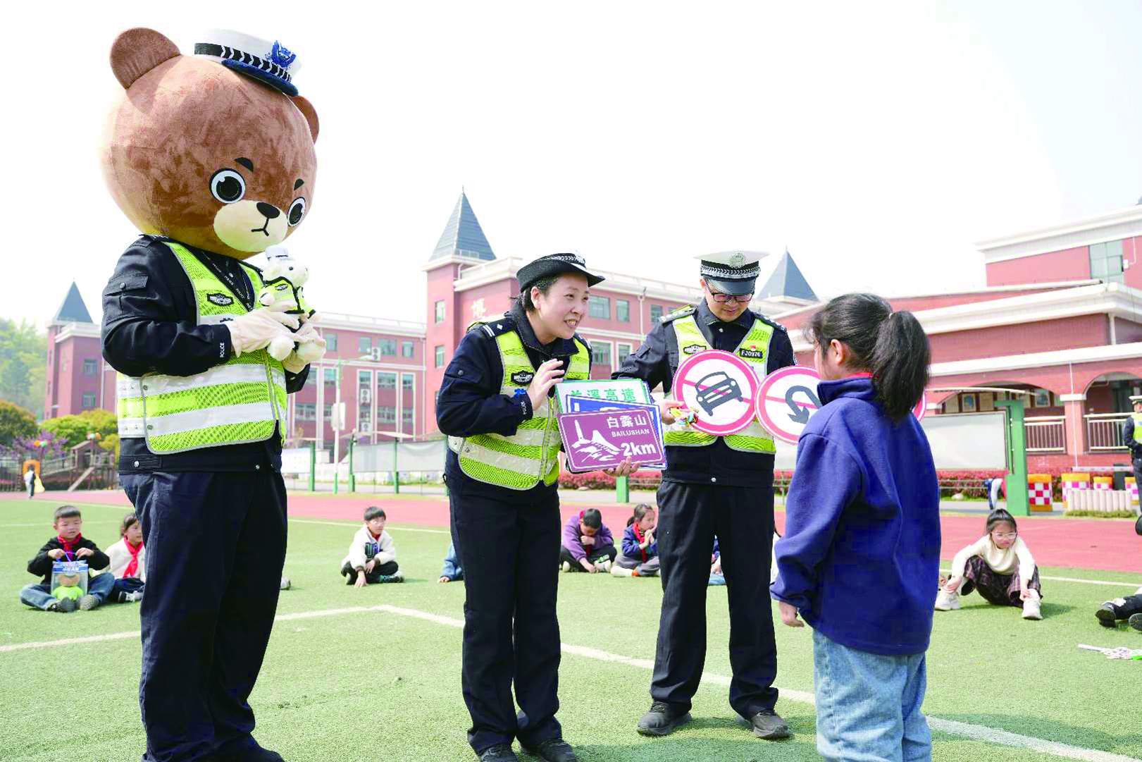 活动现场,卡通IP“警熊小胖”成为人气王,通过提问抢答、情景模拟等形式,将“一停二看三通过”“不坐超员车”等交通安全知识融入其中,让学生在趣味中学习“知危险,会避险”。