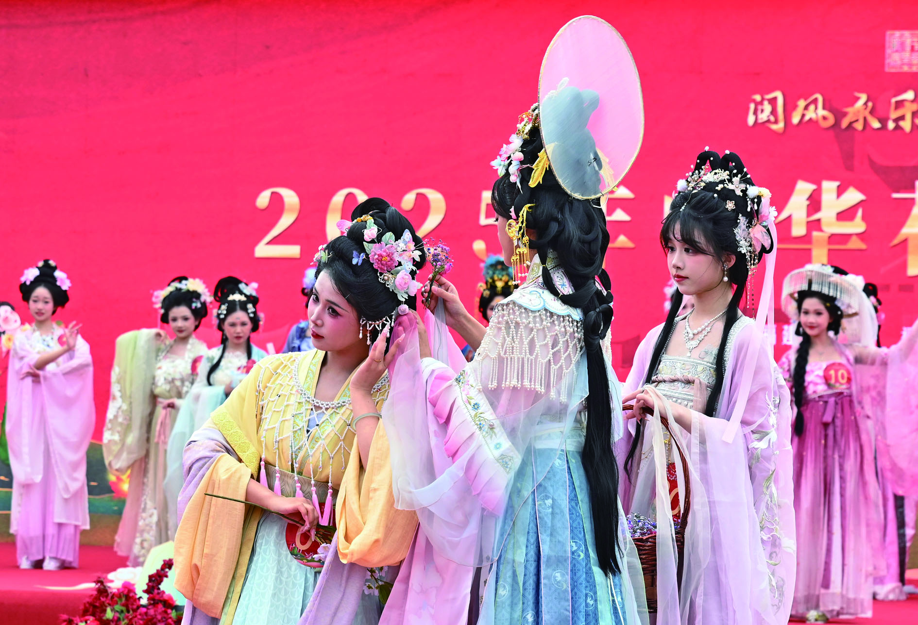 11月15日在2025年中华花神全国总决赛现场拍摄的簪花秀。 11月15日,以“闽都承礼乐,廿载耀汉天”为主题的第十二届中华礼乐大会在福建福州开幕。活动吸引了来自全国各地的汉服文化爱好者、非遗代表性传承人及行业代表300多人参加。活动期间还举行2025年中华花神全国总决赛、汉服精品展示、非遗研讨会、闽台信俗体验等活动,展现汉服文化之美与汉式生活美学。 新华社发