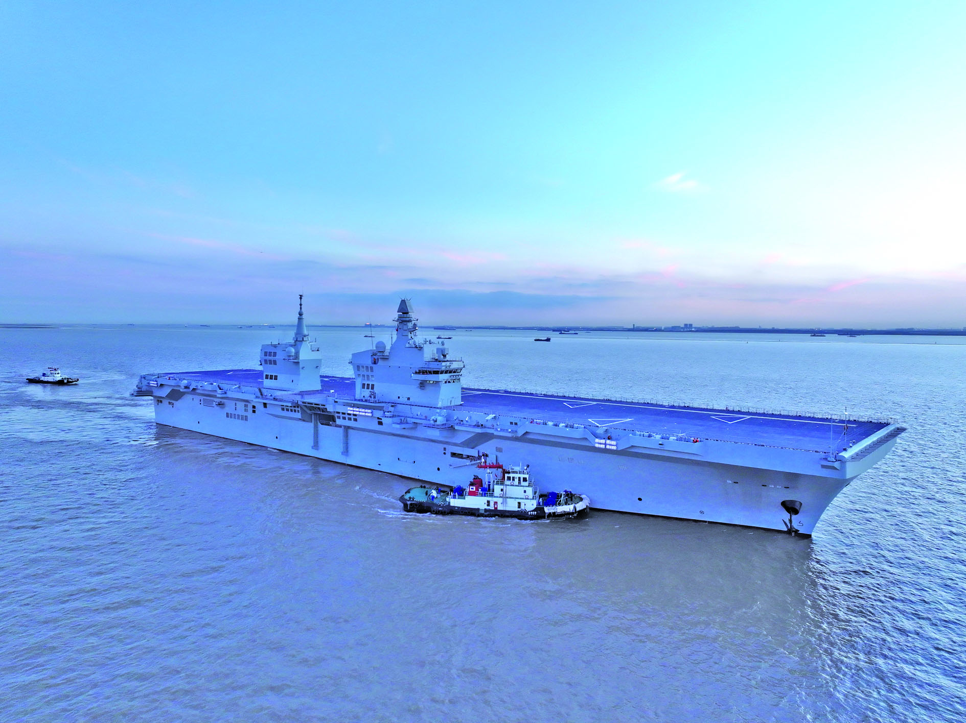 11月16日,海军四川舰顺利完成首次航行试验任务返回码头。 11月16日下午5时许,海军四川舰完成为期3天的首次航行试验任务,顺利返回船厂码头。试航期间,对四川舰动力、电力等系统设备进行了一系列测试,达到了预期效果。后续试验项目,将根据装备总体建造计划逐步展开。 新华社发