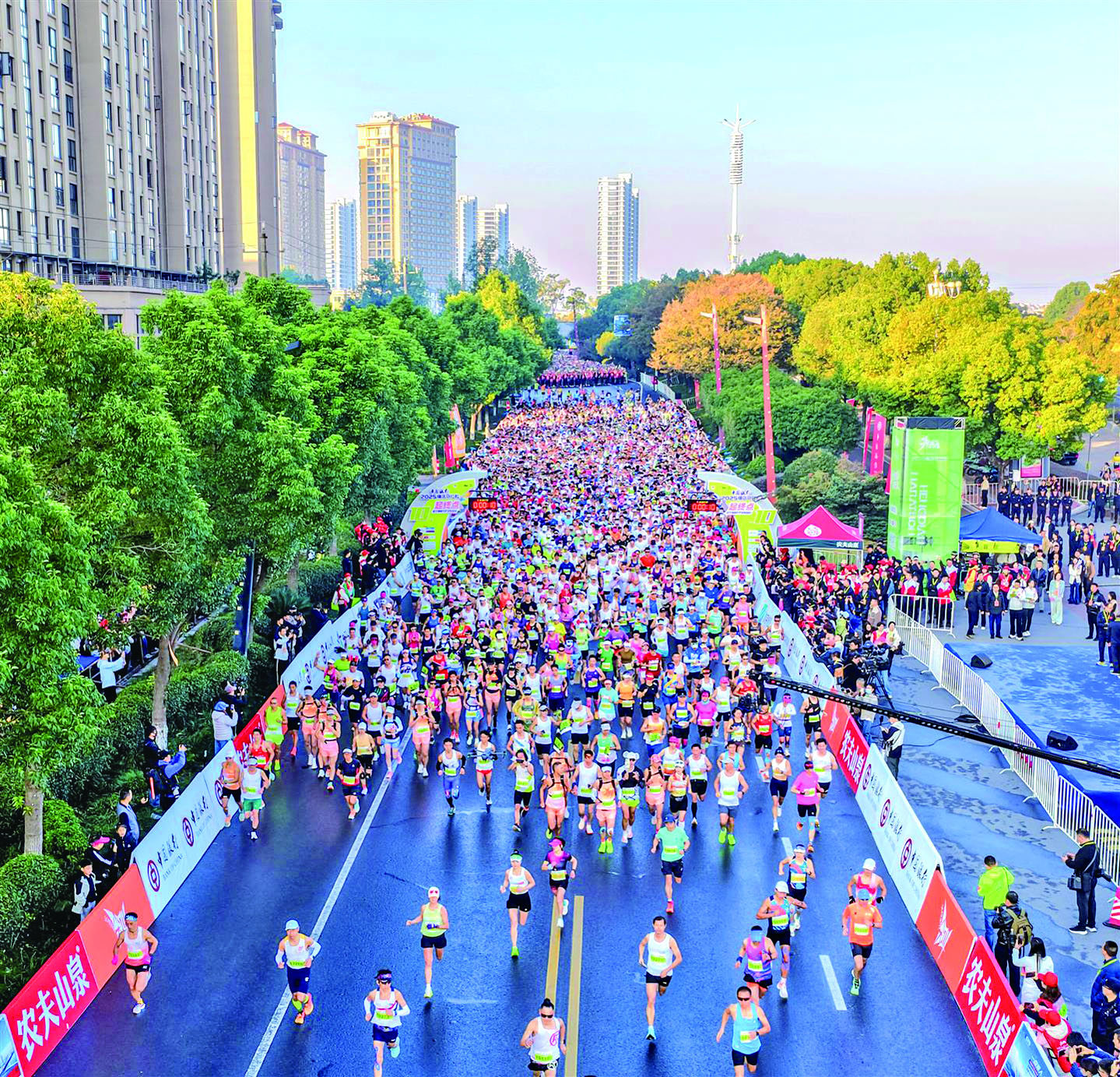记者 陈启宇 11月16日上午,第十届横店马拉松鸣笛开跑,1.8万名跑者竞逐马拉松(42.195公里)和半程马拉松(21.0975公里)两个项目。本届赛事以“跑进电影、穿越历史”为主题,将延续“影视+体育+旅游”融合模式,为跑者带来沉浸式体验。 据了解,作为浙江省马拉松金标赛事,自2015年创办以来,横马已斩获中国田径协会银牌赛事、国家体育旅游精品赛事等10余项荣誉,近五年参赛规模稳定在2.5万人,吸引国内外参赛者慕名而来。 (图片由赛事主办方提供)