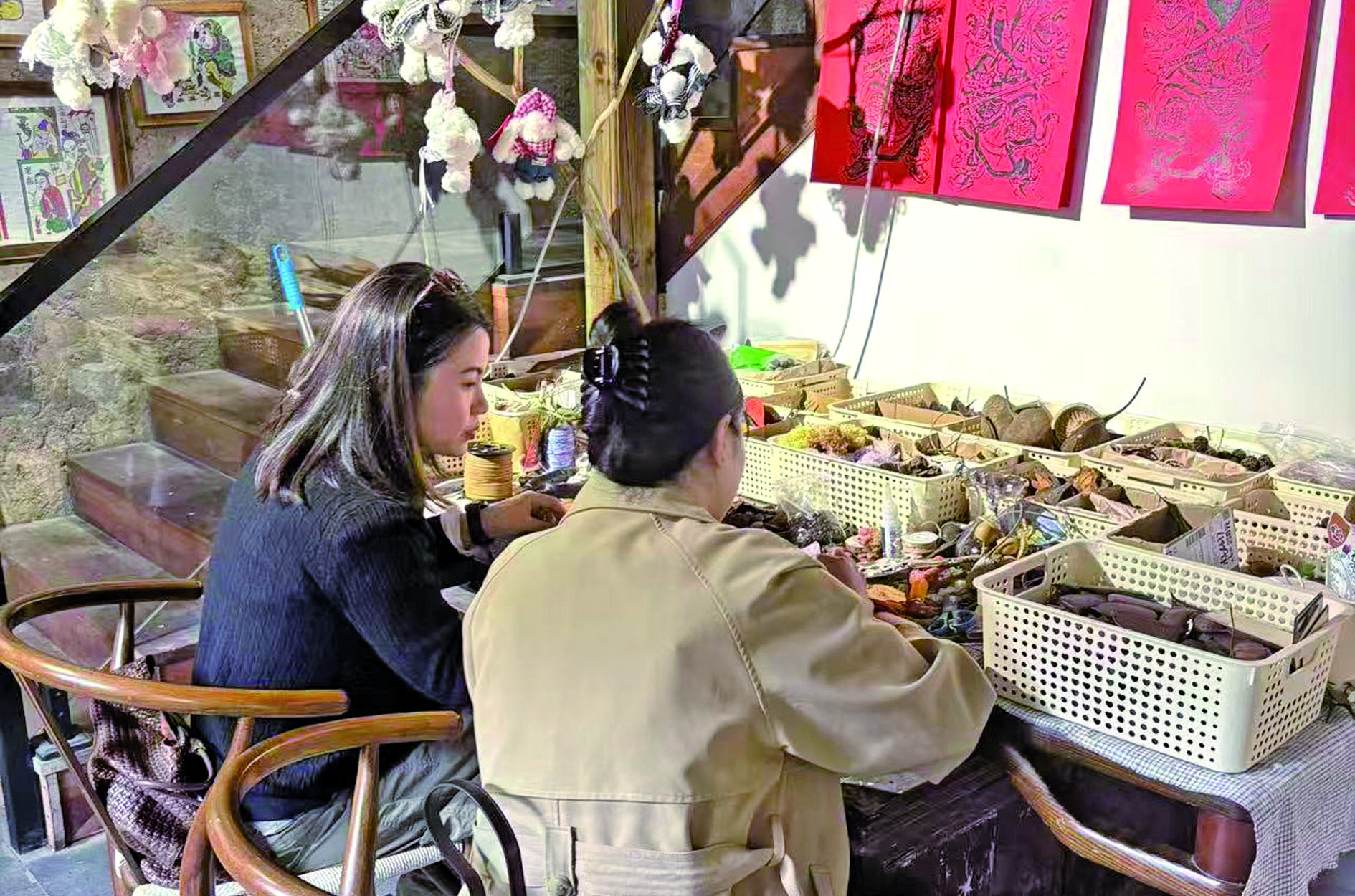 古村活力转化为致富动能:村集体经营性收入从零起步增至60多万元,今年预计再增30%。“我们推行‘共同投入、收益分成’的乡村振兴合伙人模式,配套青年食堂与旅舍,让年轻人‘有房住、有饭吃、有事业’。”郑浩介绍。南寻文创店主理人杨亚萍正是受益者,她利用药材、果壳制作手工艺品,旺季日收入超1000元:“这里环境优、客流旺,是创业定居的理想之地。”