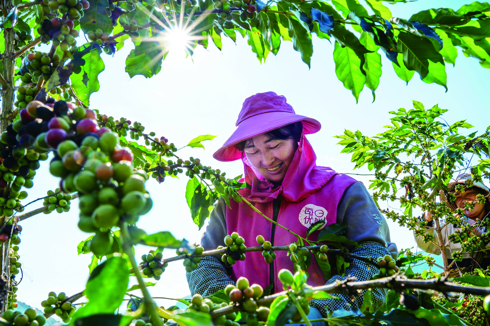 11月16日,咖农在云南省保山市隆阳区烫习村一处咖啡园采摘咖啡果。近期,云南省保山市迎来咖啡收获季,当地咖农趁晴好天气采摘、加工咖啡果,咖啡园中一派繁忙景象。 保山市西靠高黎贡山、东临怒江,其独特的干热河谷气候提供了得天独厚的咖啡种植条件。近年来,保山选育推广出铁皮卡、波邦、瑰夏等品种,实现了咖啡品种多样化发展。 新华社发