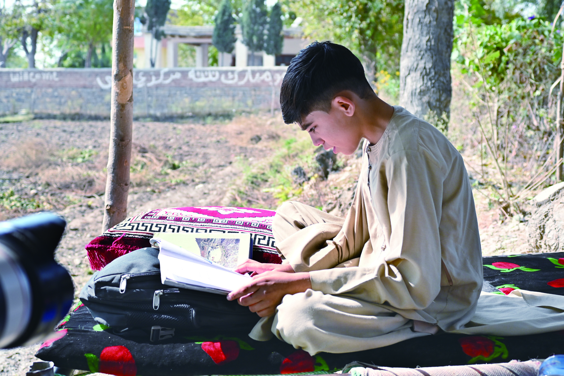 在阿富汗东部霍斯特省阿里谢尔地区一个小村庄,比拉尔·沙菲克坐在床上读书。 新华社发