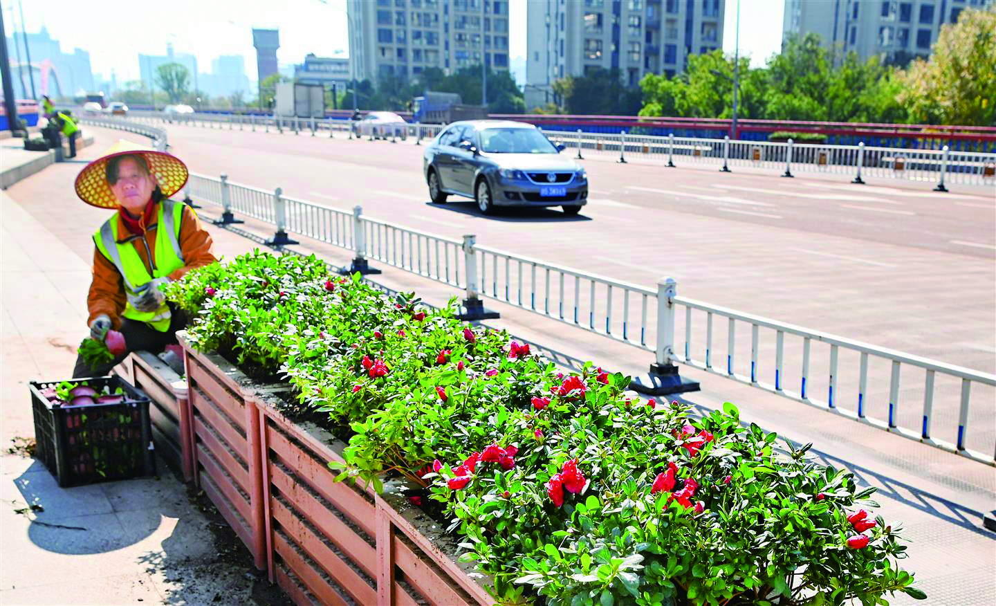 记者 李建林 文/摄 昨日,在市区双龙大桥上,园林工人对道路两侧花坛内的花卉进行更换。天气越来越冷,不耐寒的秋季花卉逐渐枯萎,因此要对花卉进行一次更换,新种羽衣甘蓝、三色堇、一叶兰等耐寒绿植。 目前,城市各大主干道、城市地标等处的绿化景观正在进行新一轮氛围营造。本次换花时间预计持续至12月中旬。