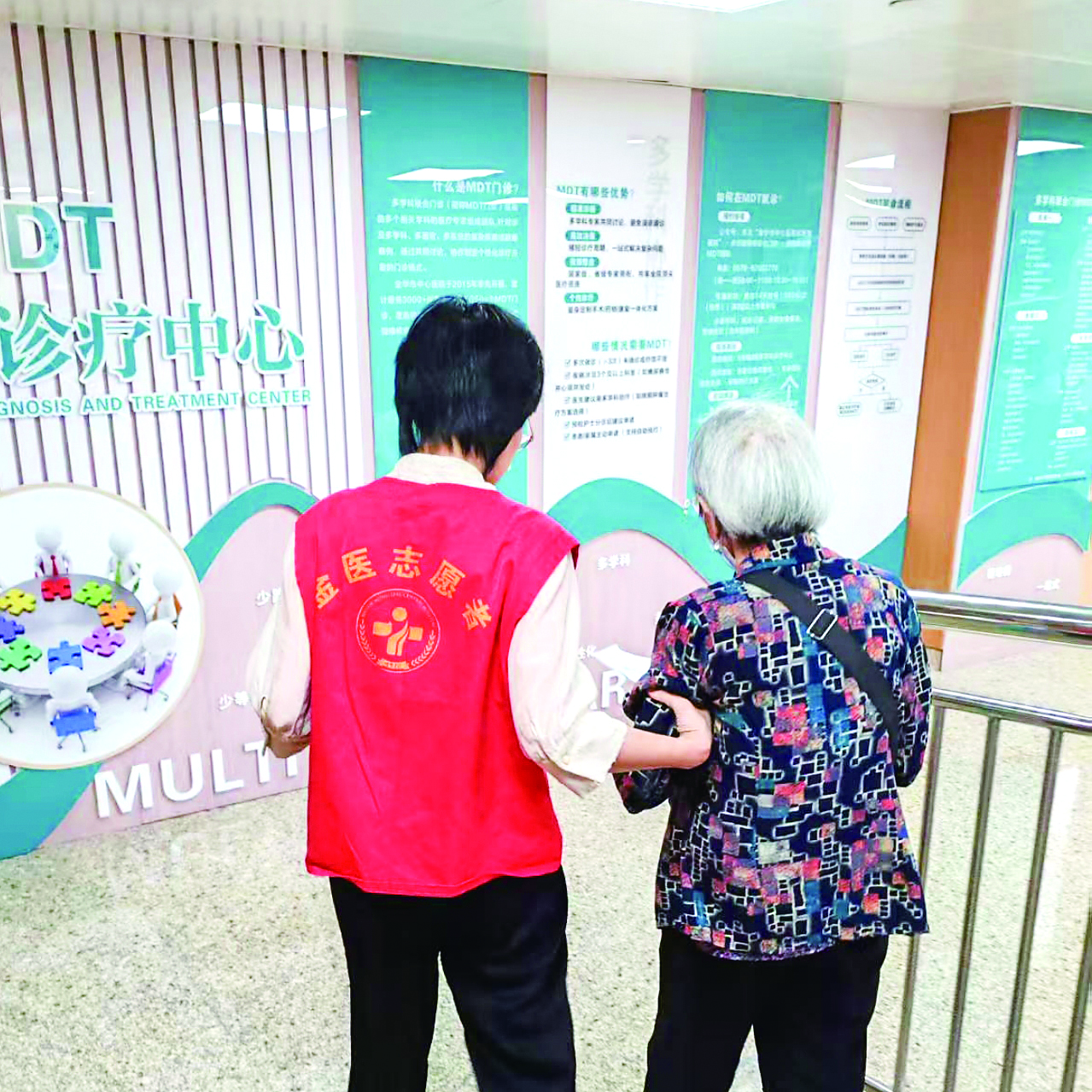 在门诊大厅川流不息的人群中,身穿红马甲的志愿者是一道独特的风景线。他们不仅是引路者,更是老年患者、行动不便者的“临时家人”。