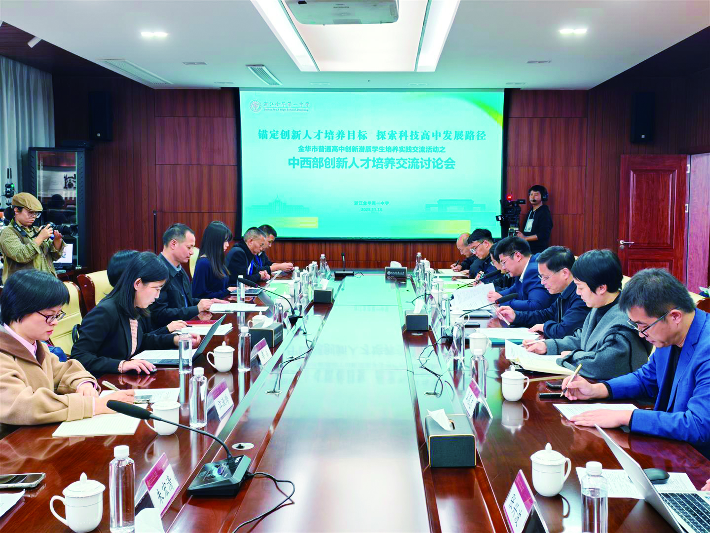 11月13日下午,本次交流活动之前,还举行了一场中西部创新人才培养交流讨论会,金华市教育局、金华市援疆指挥部、北京师范大学教师教育研究中心、浙江师范大学教育学院、磐安中学和四川丹巴县高中、湖南省凤凰崇文中学、云南省昆明市安宁中学、新疆阿克苏地区各中学等中西部10余所中学的校领导和专家教师参加会议。
