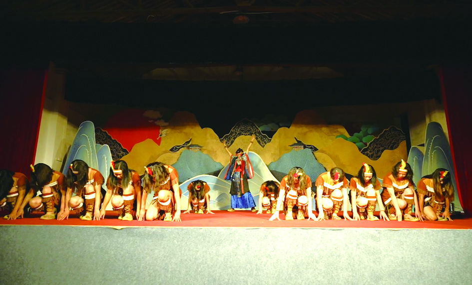 更棘手的是细节磨合。大祭司的服装较为厚重,需要有人协助;佩戴的面具尺寸不合,材质又硬,硌得脸颊生疼。为了舞台效果,伊爱芳只能自己克服。两支舞蹈分别出现在第二幕《稻神祈福 文明之源》和第六幕《大地之子 精神永续》,舞蹈演员们几乎要全场待命。伊爱芳的任务则更重一些。丰收舞结束后,她要以大祭司的身份再次登场,参加保稻节祭祀仪式,两幕剧仅间隔两分钟。几次带妆联排中,伊爱芳和搭档反复练习穿脱衣服的速度,力求呈现最佳的舞台效果。
