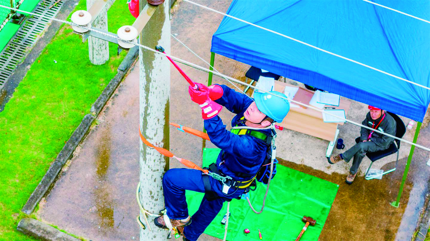 来自平湖供电所的叶国裕今年57岁,虽然因年龄和身体条件限制,操作节奏不快,但依然规范完成全部流程。他表示:“年纪大了,动作不如以前敏捷,但这些技能是我们的专业基础,只要身体允许,就会继续坚持。”