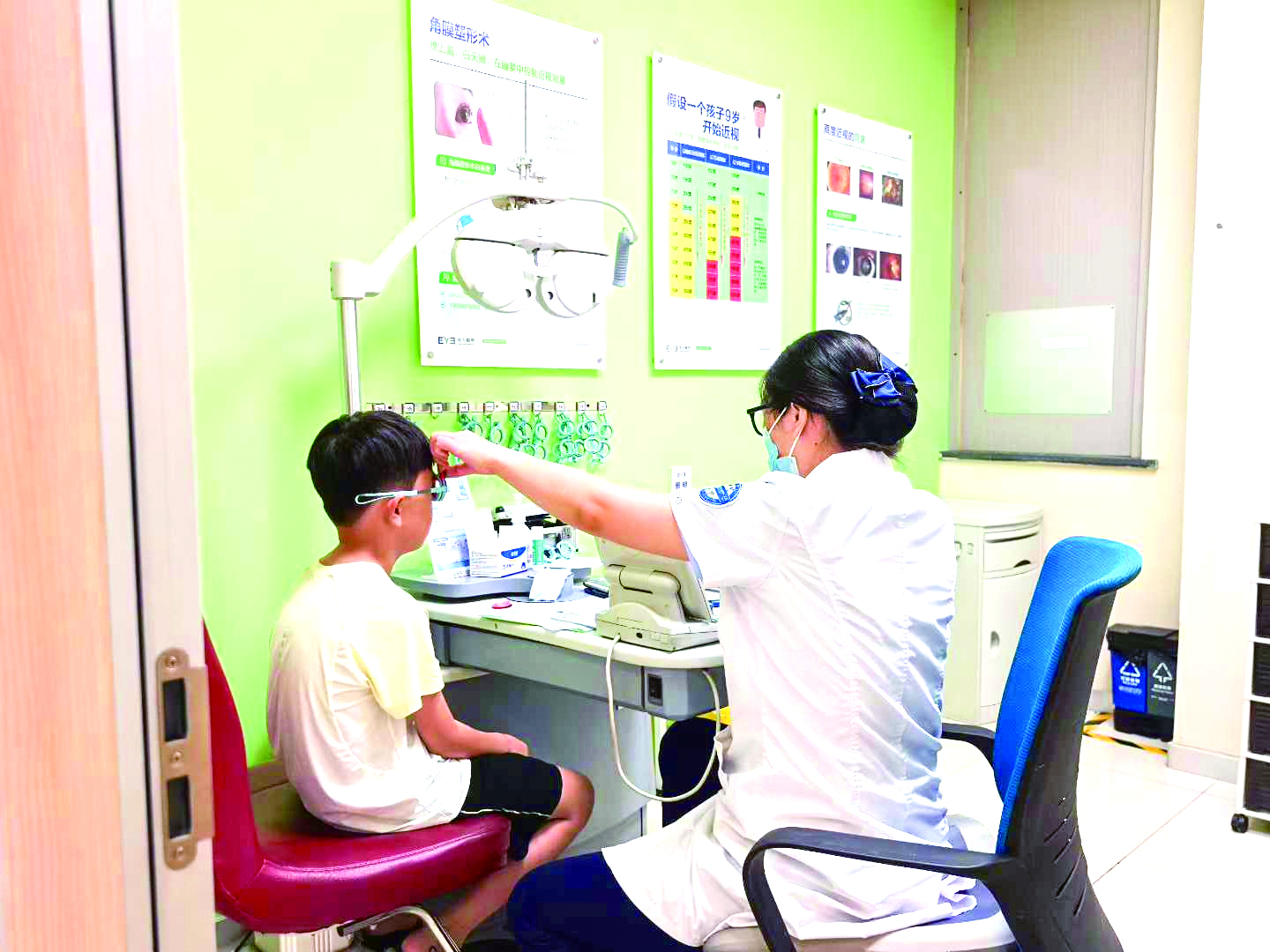 目前,许多家长对近视防控存在误区,认为孩子近视后,去眼镜店测度数配副眼镜就能“控”住,度数上涨再换一副即可。