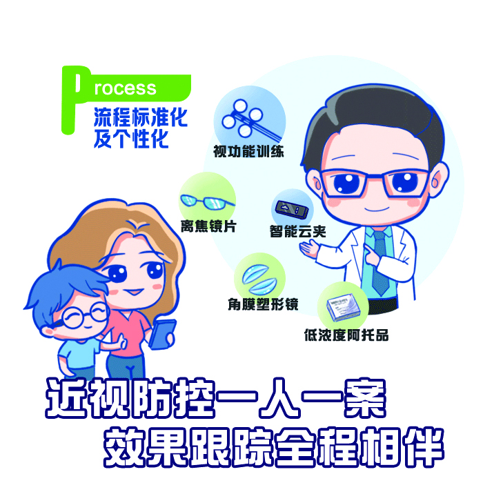 “Process:标准化流程、个性化定制”,将检查流程标准化,为孩子量身定制个性化的近视防控方案;