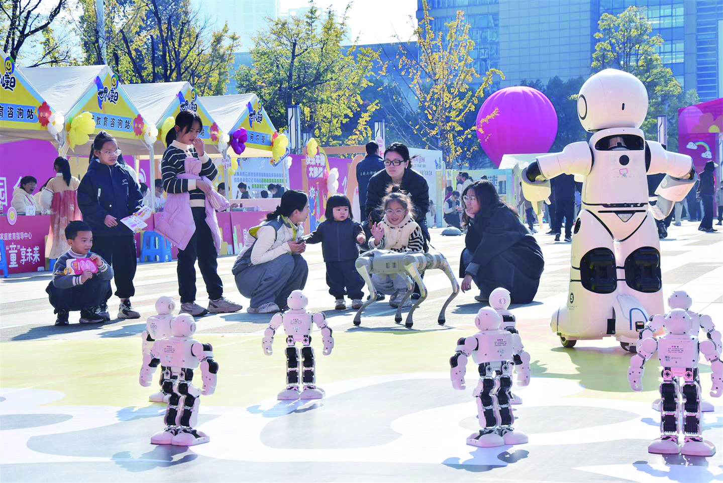 记者 舒珊珊 章陈波 文/摄 每年11月20日是“世界儿童日”。11月21—22日,永康市妇联精心策划举办“同心共创 ‘童’享未来”世界儿童日主题活动,为孩子们送上一场集趣味、学习与体验于一体的欢乐盛宴。 活动精彩纷呈。在趣味游戏区,扭扭车赛、投篮挑战充满欢声笑语;在科技体验区,“火焰掌”“静电章鱼”等科学实验引人入胜。孩子们还化身巧手匠人,体验衍纸、糖画、漆扇等非遗手作,品尝并参与制作肉麦饼、甜品等本地美食。 本次活动巧妙融合运动、科学与传统文化,并通过集章抽奖环节送上惊喜。