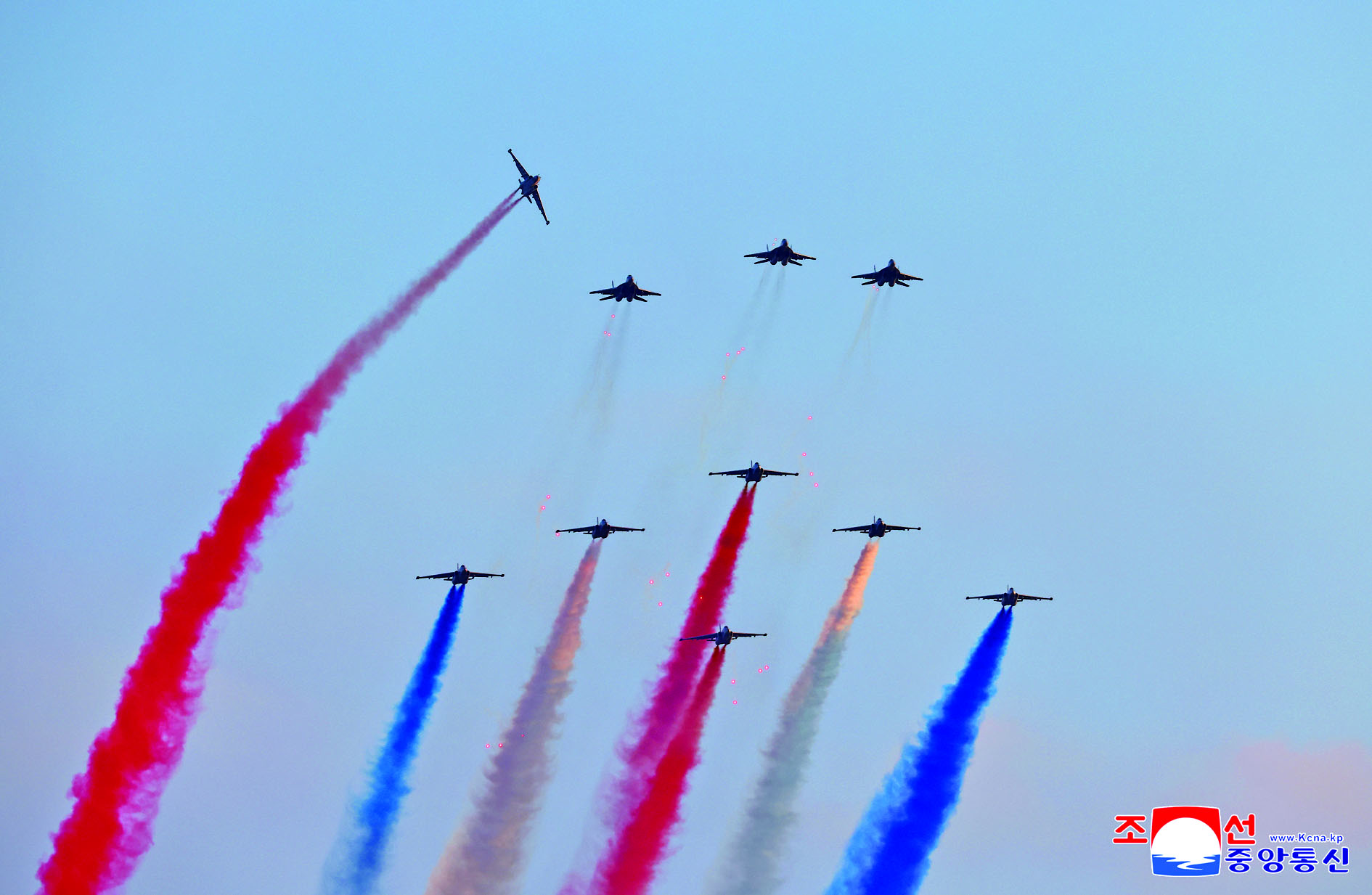 图为朝鲜空军飞机进行飞行表演。 新华社/朝中社发
