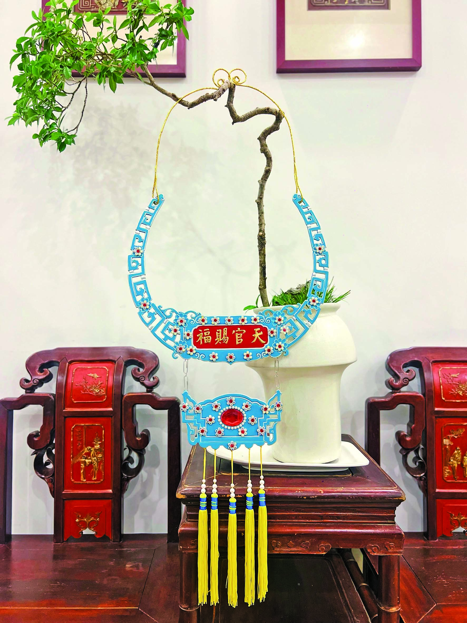 “东阳木雕与婺剧都是国家级非遗,让两者牵手,一定要倾尽心力。”陈一中接到定制需求后,立即投入创作。为适配舞台表演,他在传统形制基础上进行多重优化:选用韧性佳、性价比高的椴木为主材,采用东阳木雕经典浅浮雕技法雕刻纹样;放大道具尺寸,使其佩戴在演员胸前更显大气庄重;采用轻量化设计,确保演员表演灵活自如。