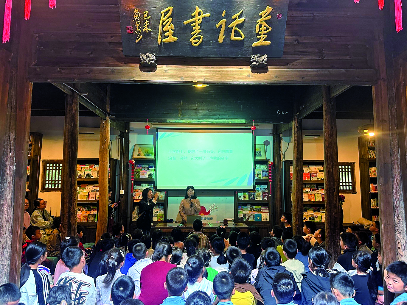 记者了解到,童话书屋每年只在春节关闭3天,其余时间免费对外开放,并且每年举办名家讲座、创作交流活动不少于10场。这些活动不仅吸引武义本地家庭,还有金华城区、义乌、兰溪等地的游客专程前来。义乌湖畔书院已连续多年组织学生到童话书屋参加活动,在古建筑中感受文学之美,与童话名家面对面交流。