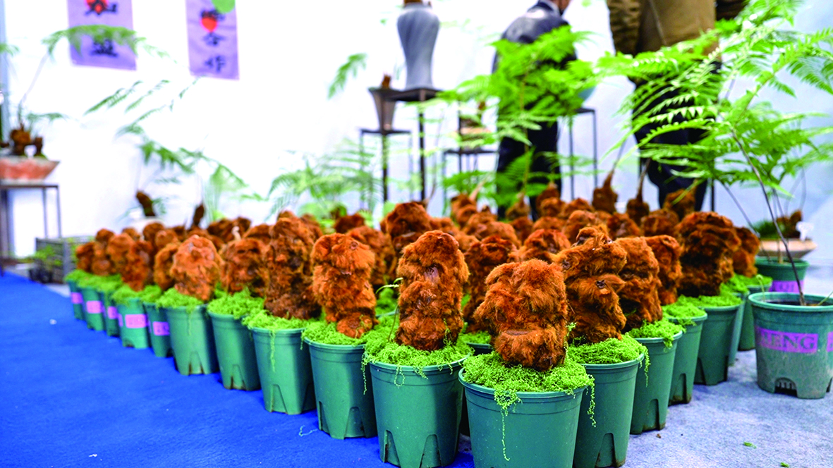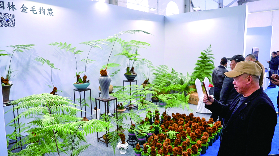 除了“老面孔”,本届花博会也不乏 “新面孔”。在以盆栽植物为主的“鸿展园林”,来自福建的负责人李千枝正在向客商讲解品种特色和栽培要点,该公司推出的金毛狗蕨盆景深受市场认可。李千枝说:“作为市场上的网红盆栽新宠,这次我们瞄准浙江市场,前来推广我们的新产品,希望通过花博会有更多合作机会。”