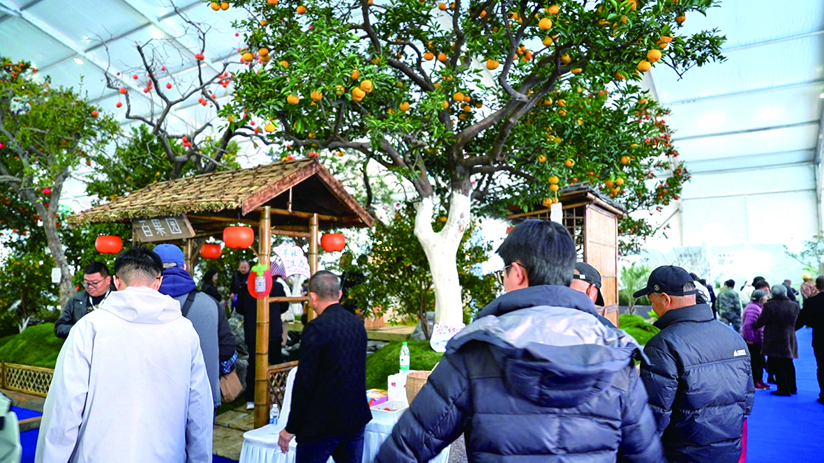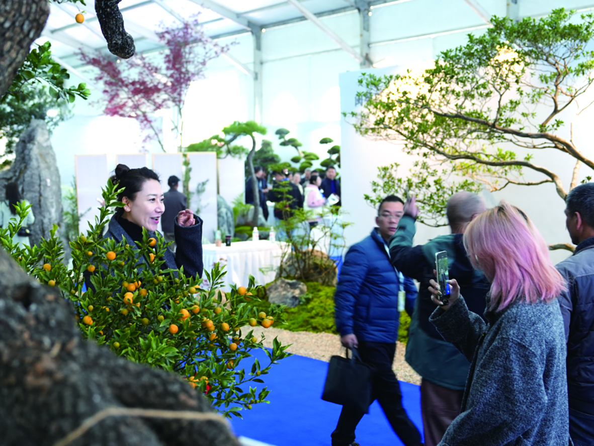 在会场中心的中央花园,古色古香的老式建筑、曲径通幽的园林小院与各式花木品种相映成趣。其中,由“萃林生态”负责人陈乐赞带来的园艺“百果园”,吸引了众多嘉宾和游客驻足。“从图纸到实景,我们还能提供一站式的庭院绿化服务。无论是本地人偏爱的果树、松树,还是别墅庭院客户青睐的石榴、海棠等,我们都能将想法落地成形。”陈乐赞说。