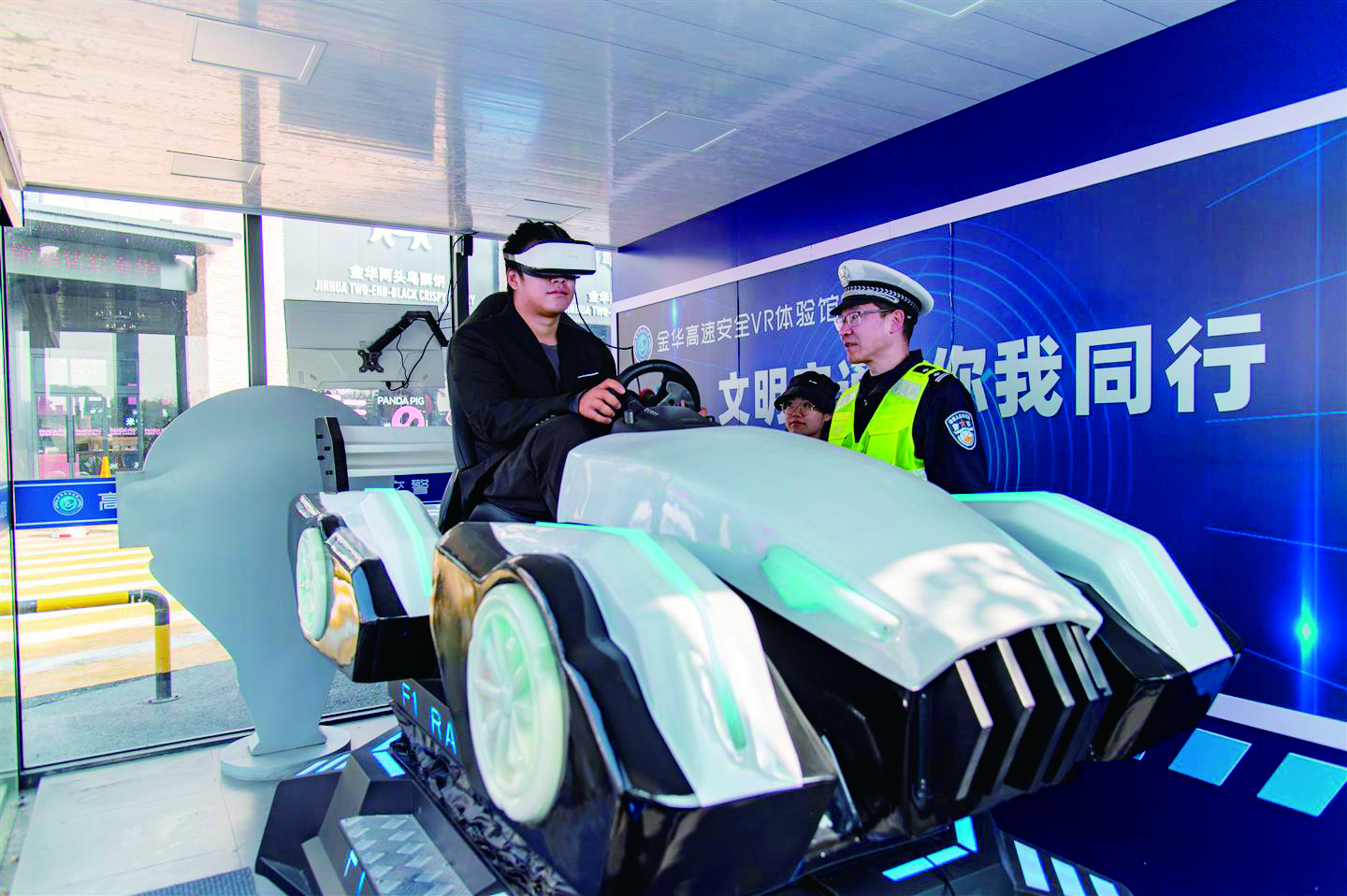记者 胡肖飞 文/摄 12月1日,G60沪昆高速公路金华服务区里,驾驶人在高速安全VR体验馆VR赛车上体验。体验馆运用VR技术、模拟交通驾驶环境,通过立体、多维度的模拟驾驶体验,为司乘人员开设安全体验课堂,强化宣传教育,增强安全行车意识。