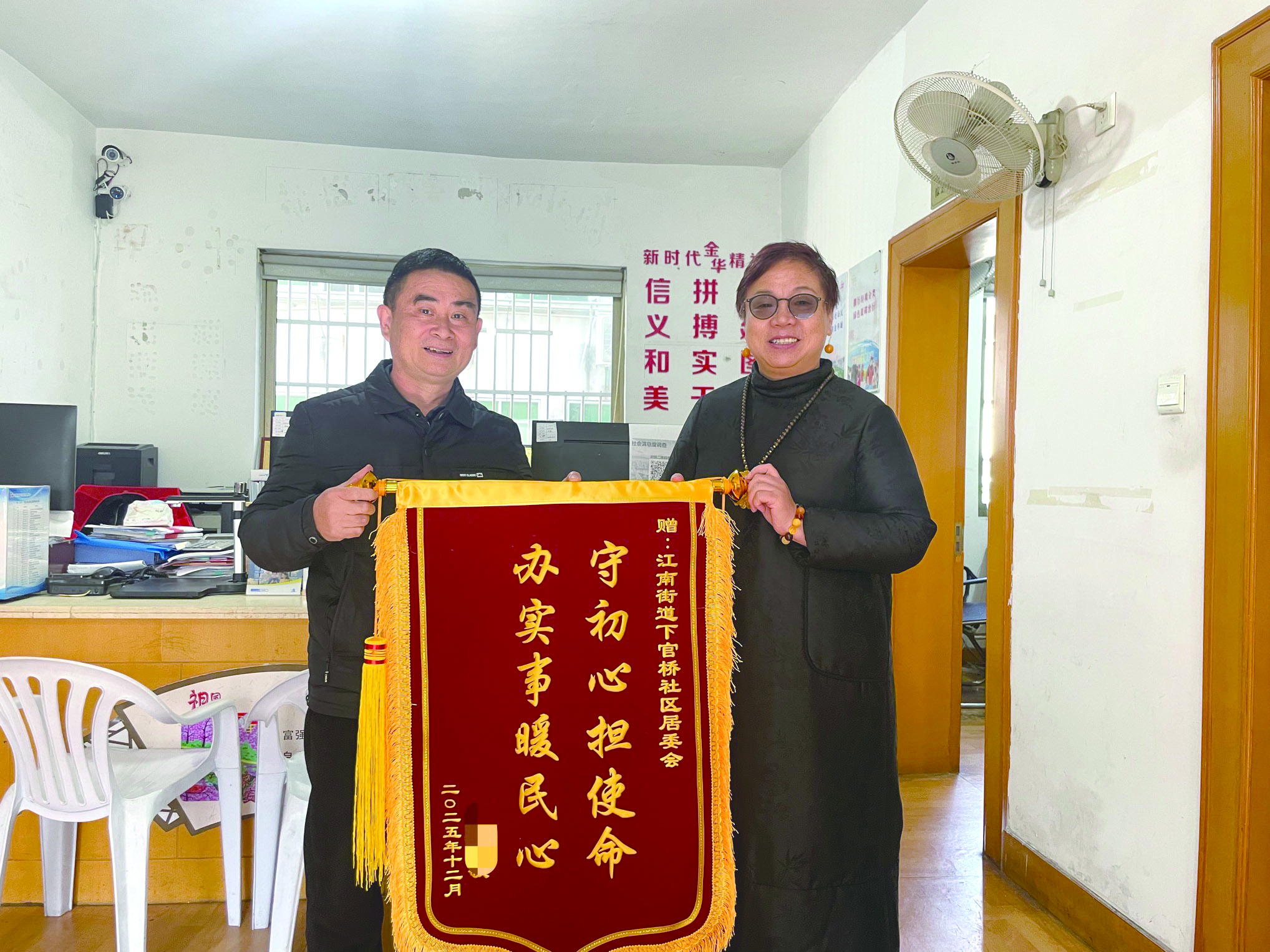 连日来,金华开发区江南街道下官桥社区接连收获居民点赞。一面来自业主朱女士的锦旗,一次沿街店铺噪音纠纷的圆满化解,成为社区用心用情服务群众、高效回应居民诉求的生动写照。