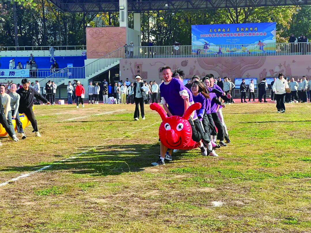 11月29日,义乌市教育系统教职工趣味运动会在江东中学举行,来自该市教育系统29支队伍近1200名教职工参与。