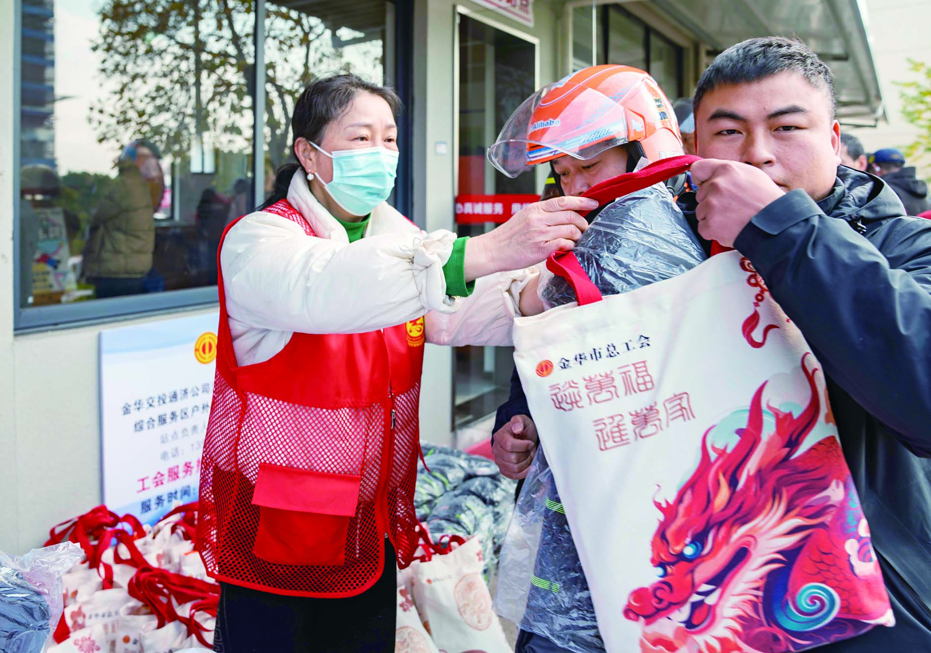 记者 陈业 文/摄 12月4日,在金华汽车东站工会驿站内,市总工会工作人员将“暖冬礼包”送到外卖骑手、出租车司机等户外劳动者手中。这是市总工会举办“温馨到家”暖冬关爱暨“12·4”宪法宣传活动现场一幕。 当天,活动现场还提供义诊理发等便民服务,设置法律咨询台,围绕《工会法》等开展宣传,增强劳动者依法维权能力。
