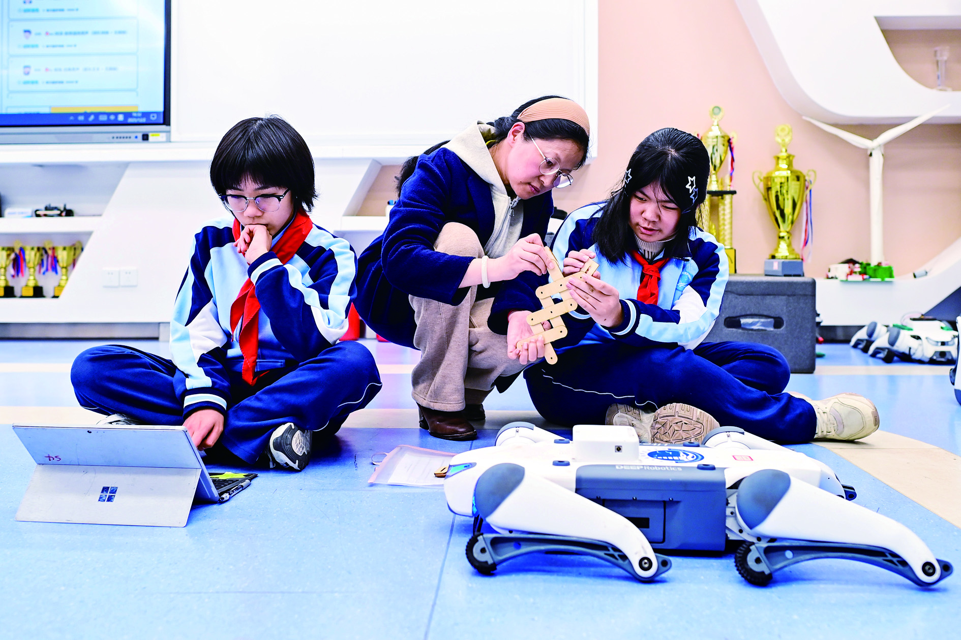 12月2日,杭州市保俶塔实验学校的学生们在人工智能通识课上学习如何给机器狗编程。 自2025年秋季学期起,浙江省杭州市开始在中小学全学段开展人工智能通识教育。根据杭州市教育局出台的《杭州市中小学人工智能教育地方课程纲要(试行)》,此次人工智能通识教育覆盖小学至高中全学段,每学年不少于10课时。目前,杭州市许多中小学校通过开展人工智能主题课程、提供人工智能实践机会、安排基础人工智能学习活动等多样化形式,积极推进校园内的人工智能通识教育。 新华社发