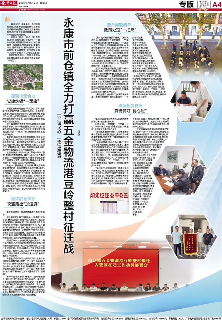 永康市前仓镇全力打赢五金物流港豆岭整村征迁战