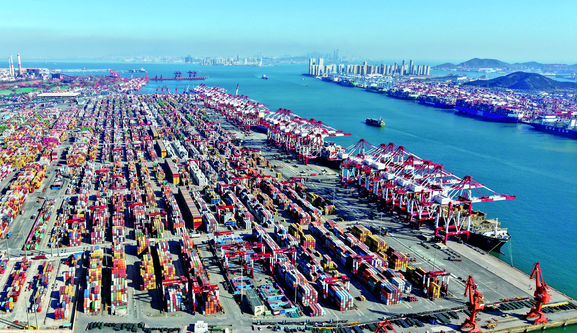 12月8日拍摄的青岛港前湾港区(无人机照片)。 12月8日,山东港口青岛港2025年货物吞吐量累计突破7亿吨,较2024年提前15天。 据介绍,今年以来,青岛港持续织密国际物流航线网络,近240条航线覆盖全球180多个国家和地区的700多个港口,推动“新三样”、高端设备、精密仪器等高附加值货种驶向全球,成为中国与新兴市场贸易往来的“黄金通道”。 新华社发