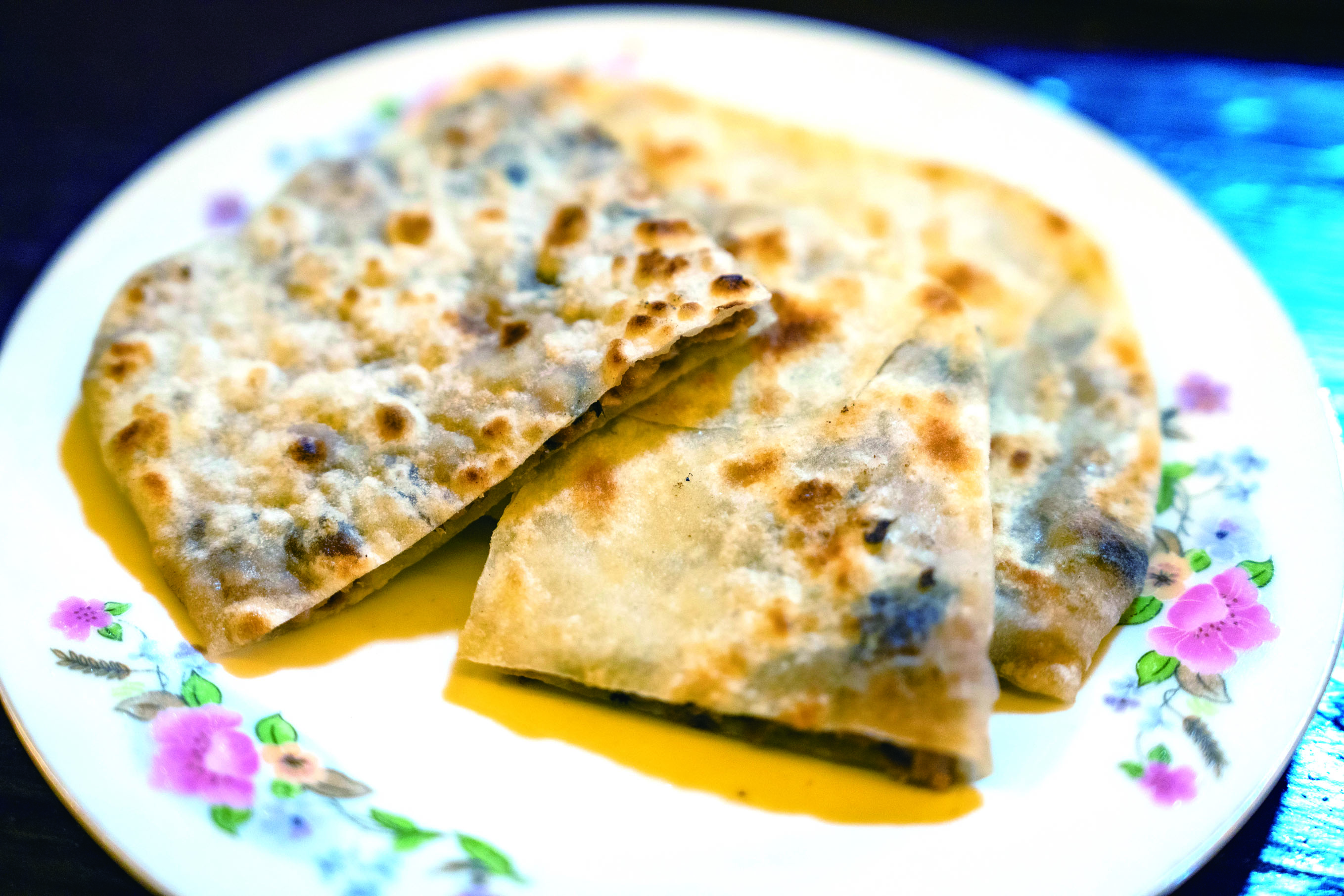 趁热咬下,先感受到饼皮的筋道,接着是馅料的嫩滑。豇豆在炒制时简单调味,又沾染了肉的香气,油润爽口,带来清爽的层次,饼皮内层吸收了部分汤汁,柔软中带着麦香,味道踏实又落胃。