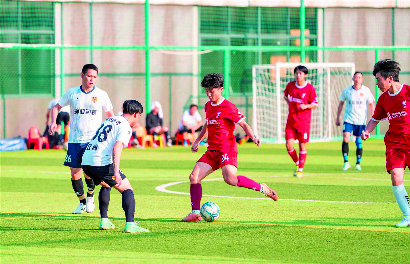 记者 陈业 文/摄 12月7日,在金东区飞阳复兴足球公园,我市一八人制业余足球联赛激战正酣。 本次赛事共吸引20支球队、413名足球爱好者参与,为本地足球爱好者提供交流竞技的平台,助力全民健身氛围提升。球员们在赛场上挥洒汗水、追逐梦想,展现出蓬勃的活力。值得一提的是,该赛事参赛者年龄跨度较大,其中最年长的达69岁。
