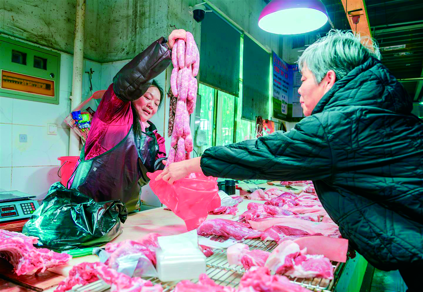 12月9日,在市区江北曙光菜场57号摊位前,自制的土香肠成为热销商品。据了解,仅当日就已售出约500公斤土香肠。