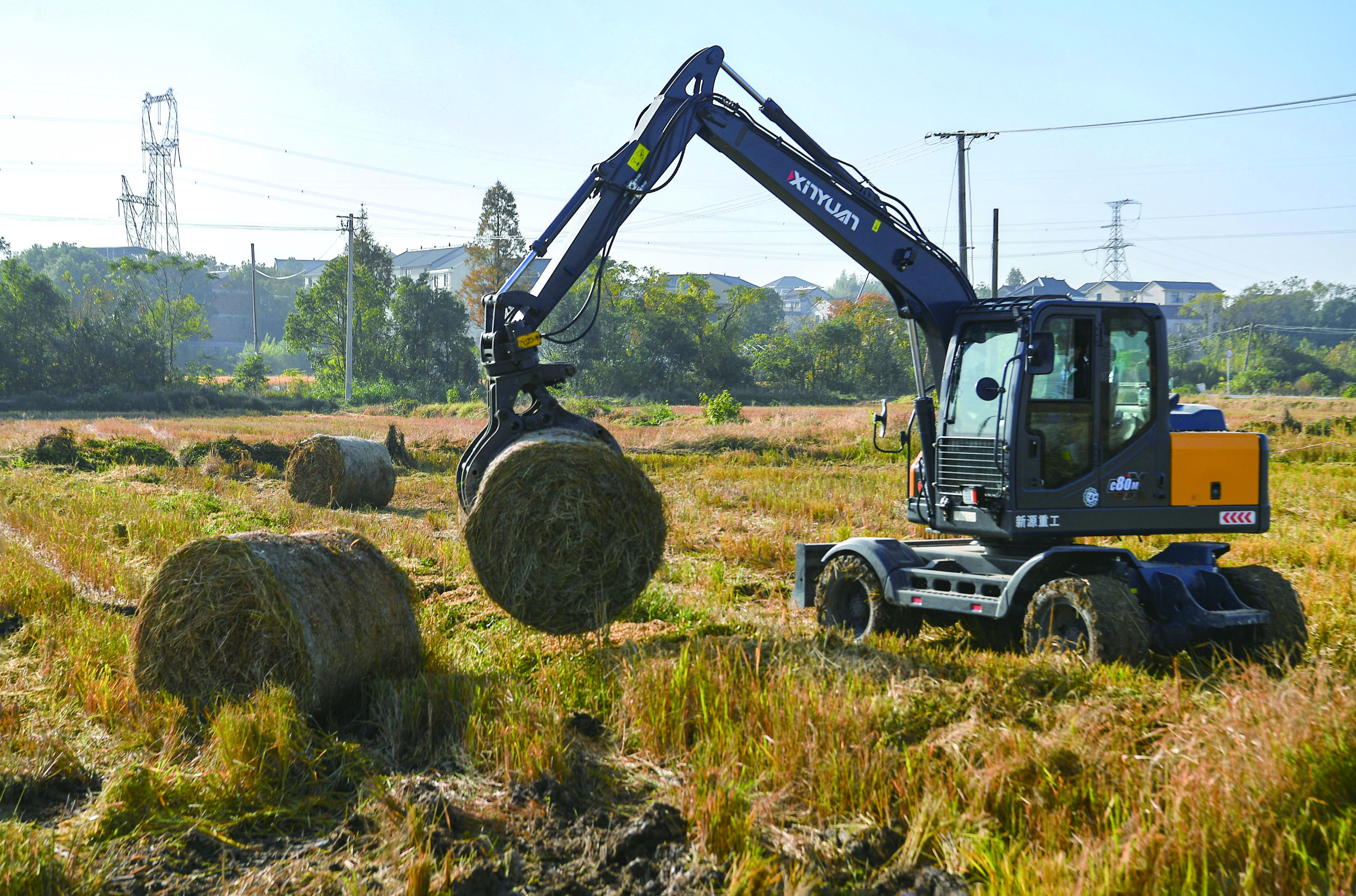 日前,在金东区澧浦镇的农田里,该区农业农村局组织机械和人员将晚稻收割后的秸秆集中打包收储。