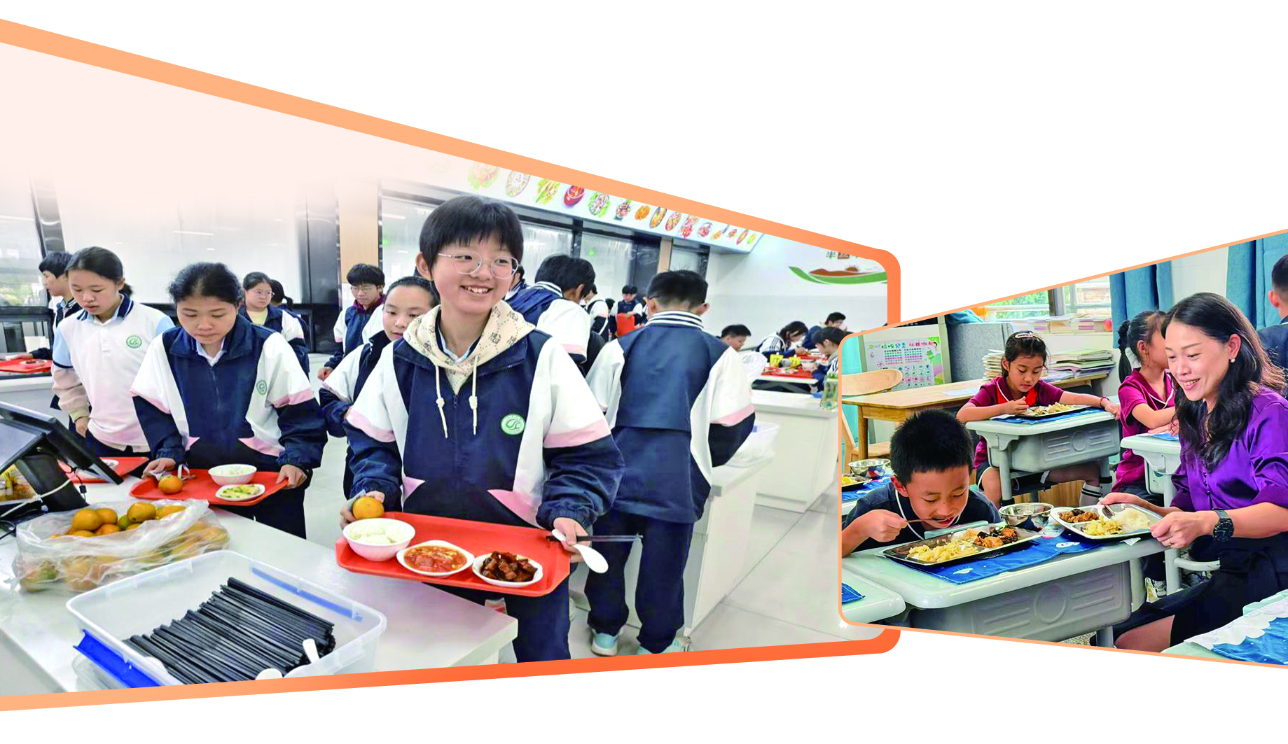 端出一道卫生健康的校园餐,背后要花多少心思?清晨,新鲜食材运抵学校,一支由家长志愿者、教师和食堂员工组成的验菜团在智能电子秤前称重、验收;食材送至厨房后,后厨工作人员各司其职,洗菜、切菜、烹饪;午餐时间,由教师和家长组成的陪餐团与学生一起吃饭……如今,这样热气腾腾又井井有条的场景出现在全市各中小学校。