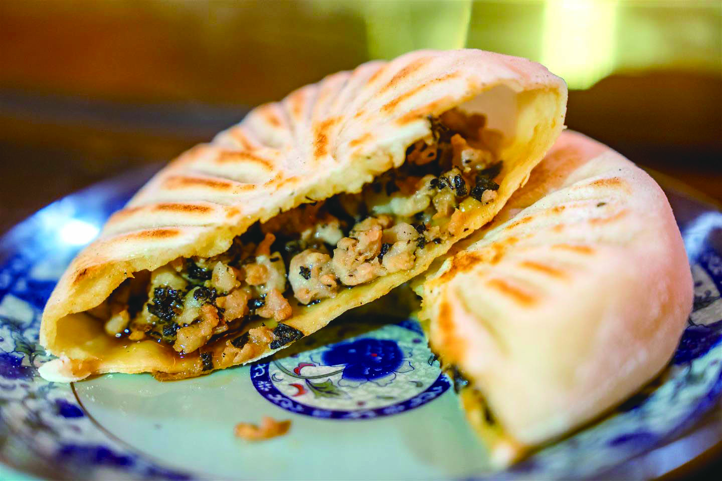 饼的外皮微焦带脆,贴着馅料的部分浸透了肉汁,软和油润。一口下去,肉的醇厚、腌菜的咸鲜、面皮的麦香,还有那股独特的炭火气,全在嘴里撞个满怀,回味无穷。