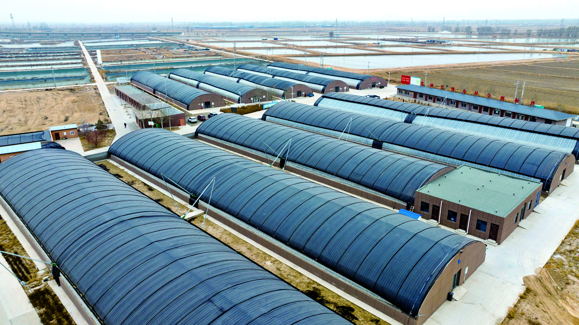 这是12月12日在宁夏贺兰县蓝湾生态农业有限公司拍摄的渔业设施温棚(无人机照片)。 近年来,宁夏银川市贺兰县借助闽宁协作平台,挖掘盐碱地农业发展潜力,发展水产养殖,建设工厂化养殖车间和渔业设施温棚,引进大黄鱼、青蟹、黄鳍鲷、大西洋鲑等经济品种,探索“以渔治碱”新路径。新华社发