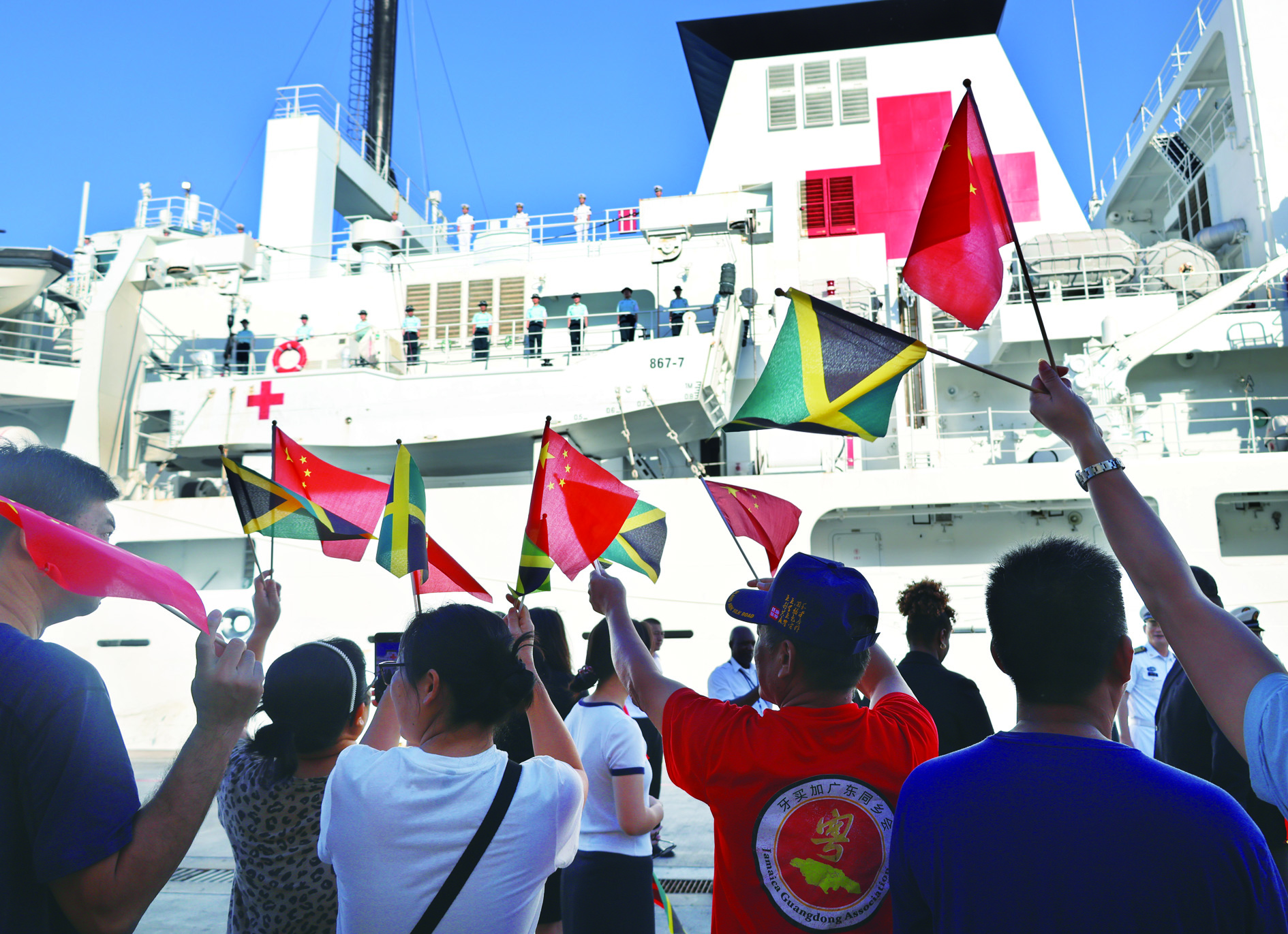 12月16日,中国海军“丝路方舟”号医院船驶离牙买加法尔茅斯港。这是欢送仪式现场。 当地时间12月16日,执行“和谐使命—2025”任务的中国海军“丝路方舟”号医院船圆满结束在牙买加为期12天的友好访问和医疗服务,驶离牙买加法尔茅斯港,前往巴巴多斯执行后续任务。 新华社发
