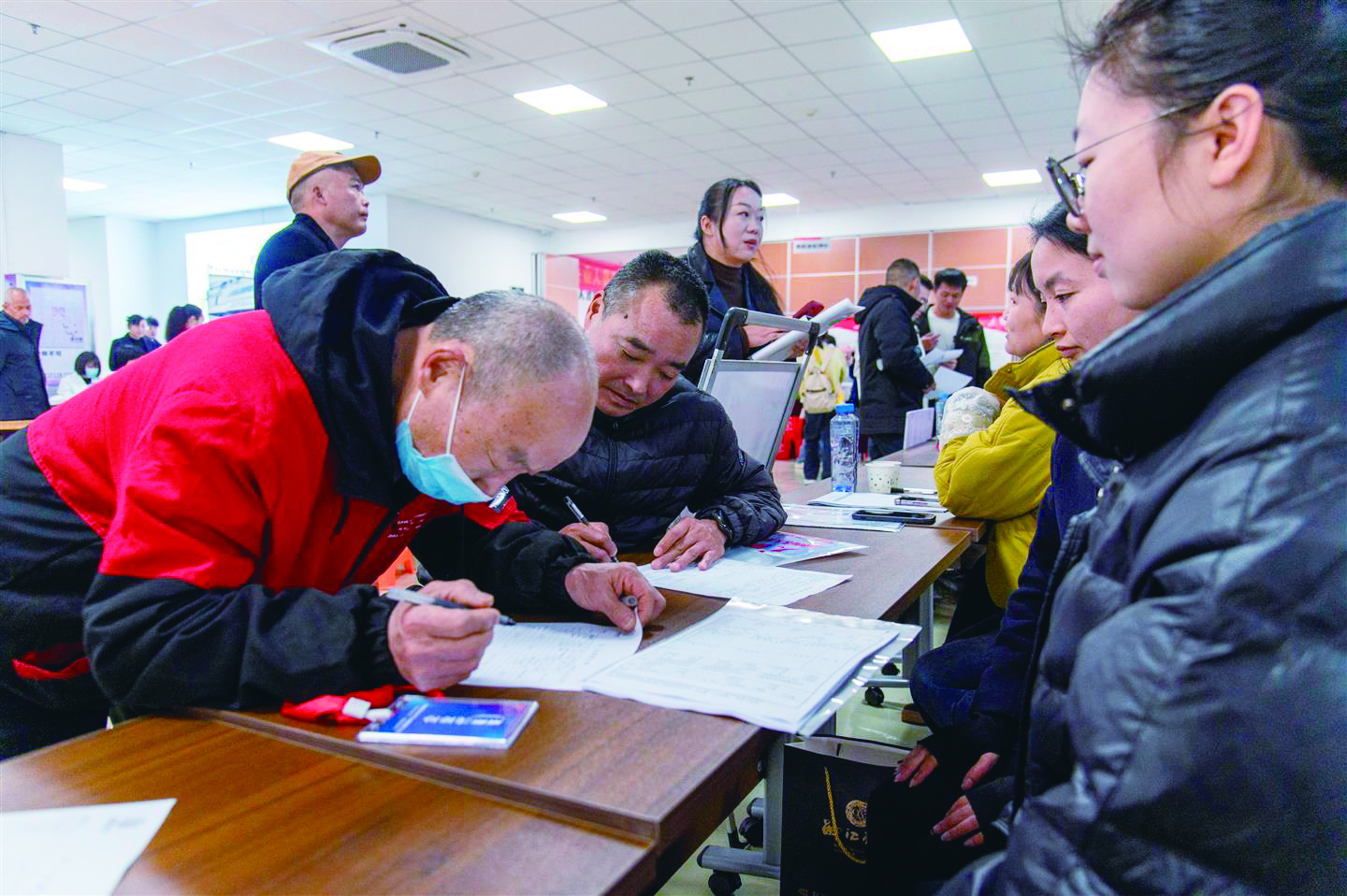 记者 胡肖飞 文/摄 12月18日,婺城零工服务中心里,求职者在2025暖冬乐业专场招聘会上与招聘单位工作人员面对面沟通。当天,婺城区人力资源和社会保障局在这里举行“就业供需精准配、乐业婺城共发展”2025暖冬乐业专场招聘会。