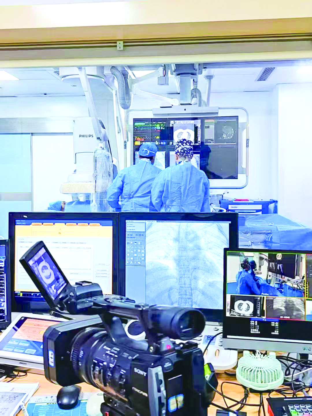 60岁的患者吴先生以前曾患下肢血栓,导致肺栓塞,接受抗凝治疗。近一年来,他发现自己越来越体力不支,才爬一层楼就呼吸困难,被诊断为慢性血栓闭塞性肺动脉高压。在此次手术直播中,胡晓钢团队使用了创新的手术方式,通过纤细的导丝进入血管,精准定位后用球囊进行扩张,让拥堵的“道路”得以疏通。远端分支血管错综复杂,考验医生对血管的深度理解和手上细微反馈的充分掌握,这一切,离不开平时大量的临床积累。在浙江省介入医学分会副主任委员、金华市中心医院党委副书记郭晓华的带领下,肿瘤与血管介入科每年介入手术量近2000台,其中肺血管病相关手术超过260台。
