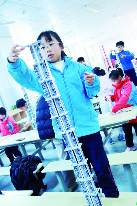 跳绳抽得地面“啪啪”响,纸飞机“呼”地掠过头顶,扑克牌搭的高塔在惊呼中稳稳升高……日前,东阳市吴宁第五小学第三届校园吉尼斯活动火热开展。