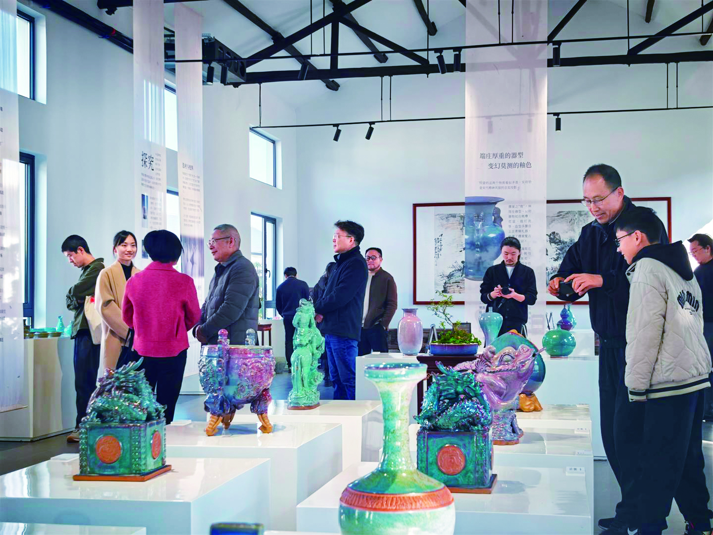 记者 王文湛 文/摄 近日,由武义县文化馆(非遗保护中心)指导,卢钧窑、钧兴、移和文化、ARTIVO联合主办的“国瓷钧韵·釉色山河”——卢钧窑·钧兴殿堂藏品暨钧瓷非遗艺术展在浙江移和古建筑藏馆开幕。 本次展览选址于移和文化运维的古建筑藏馆,馆内陈列大量木作、石作、瓦作及民俗构件,其历史底蕴与钧瓷的文化气质相得益彰。此次展览将持续至明年3月初,在为期3个月的展期内,将开展非遗研学体验、文化艺术交流等系列活动,积极探索古建筑活态利用路径,推动历史文化遗产与城市发展有机融合。