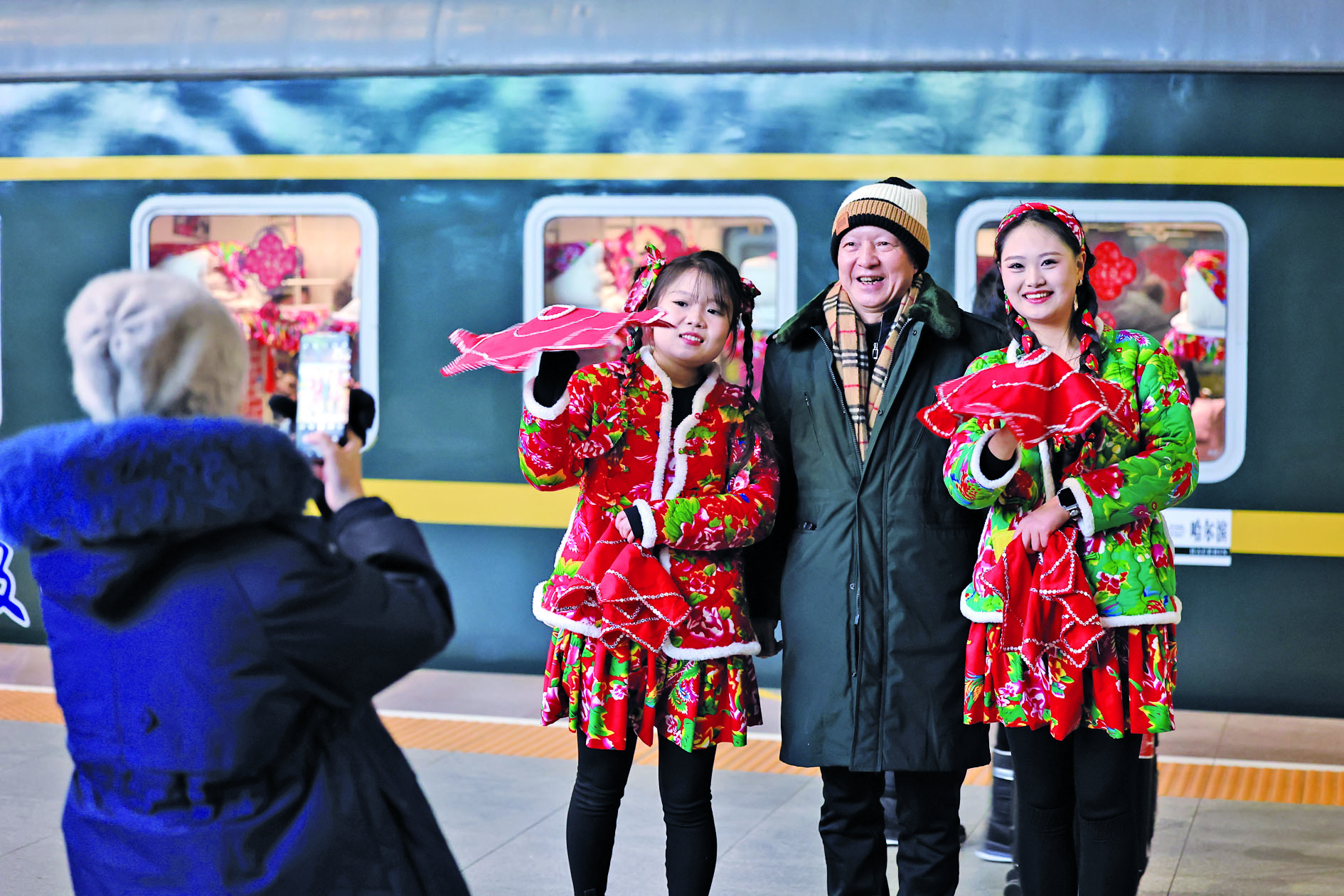 12月22日,K7041次旅客列车从哈尔滨站驶出,开往漠河。这是中国铁路哈尔滨局集团有限公司今冬开行的首趟东北民俗文化主题列车,旅客可在旅程中感受东北地域文化的温度与“热闹劲儿”。 新华社发