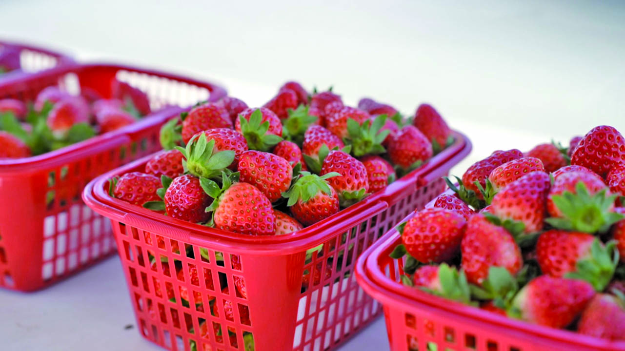 冬日里的“甜蜜顶流”草莓也已抢“鲜”登场。浦南街道瑞英家庭农场的大棚内暖意融融,一垄垄草莓长势喜人,翠绿叶片下,饱满红润的果实散发着浓郁果香。有着18年草莓种植经验的负责人黄瑞英介绍,农场今年种植了12亩草莓,涵盖“黑珍珠”“红颜”“隋珠”等多个品种。今年9月初定植的“红颜”和“隋珠”头茬草莓,因花芽分化早,提前半个月上市,虽个头略小,但风味更胜一筹,每公斤售价80元。受气温影响,第二批草莓苗补种时间推迟,预计12月中下旬本地草莓供应量将大幅增加,价格也会更加亲民。