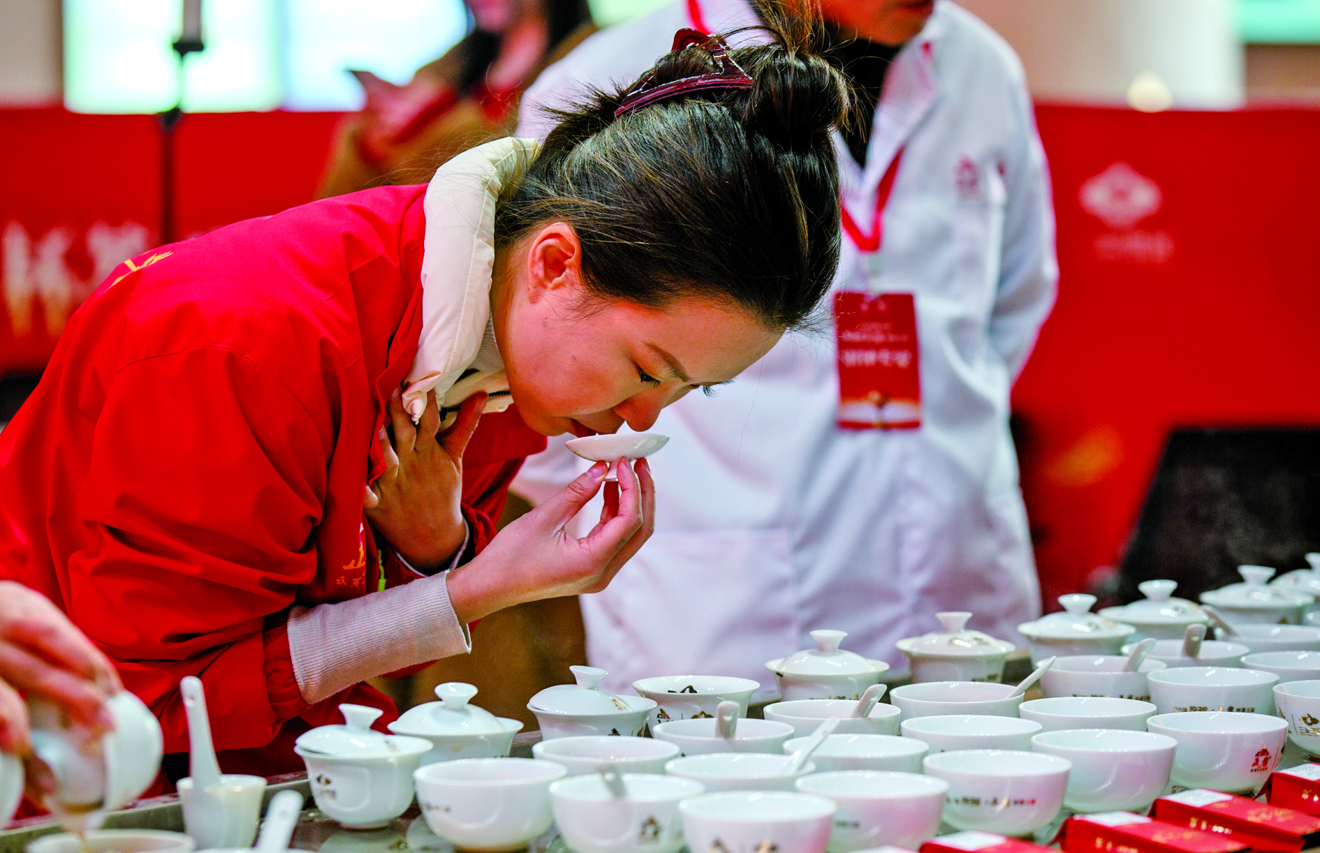 12月26日,在茶王赛现场,一名工作人员在评审茶样。 12月26日,武夷山市第六届“1938·正岩”杯茶王赛落下帷幕。此次茶王赛从近4000个送审茶样中决出了大红袍、水仙、肉桂、陈茶四大品类的新一届茶王。 近年来,作为知名产茶地,武夷山市始终坚持茶文化、茶产业、茶科技“三茶统筹”的发展理念,茶业全产业链产值已突破150亿元大关,成为当地乡村振兴的支柱产业。 新华社发