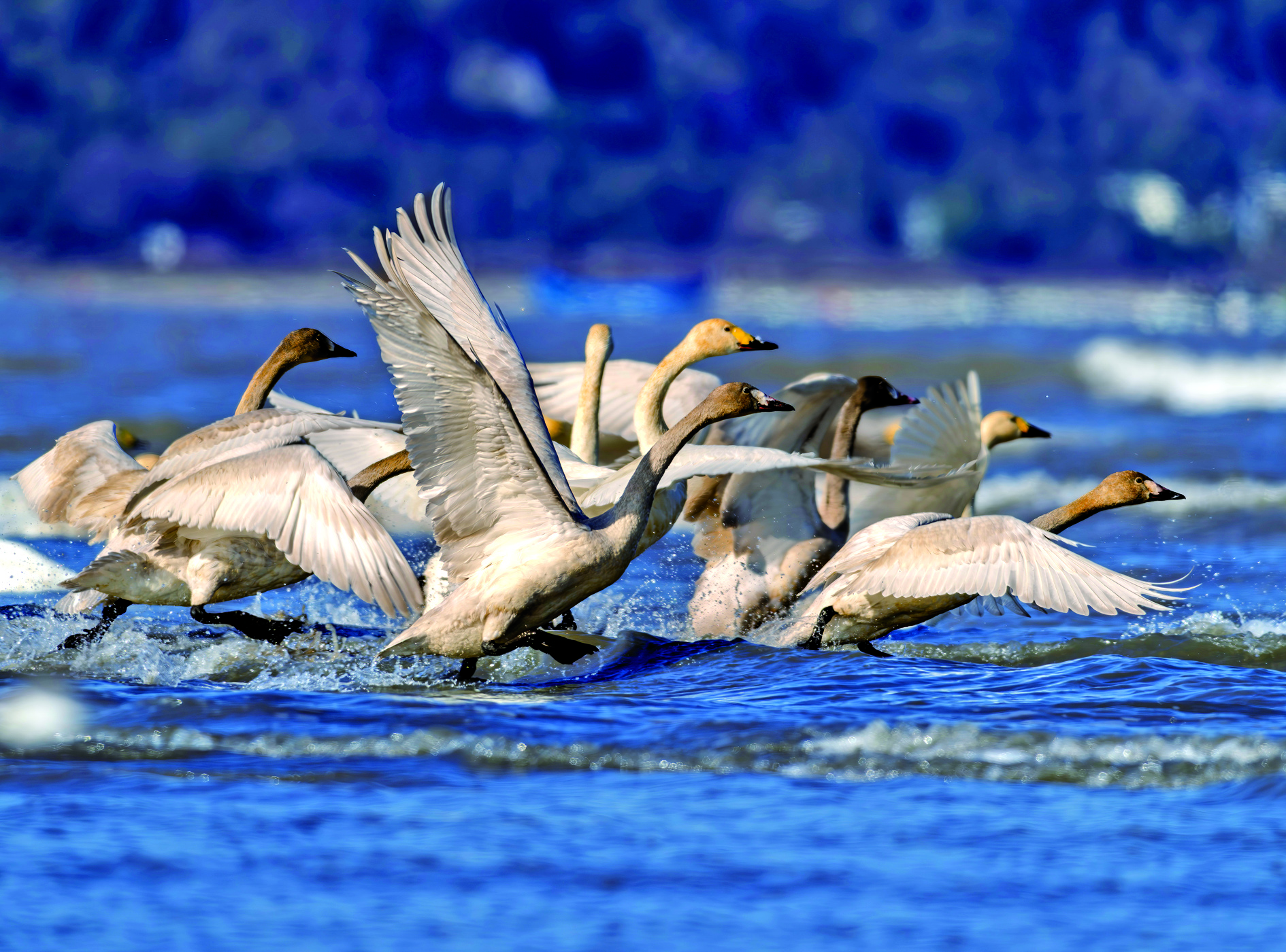 一群小天鹅在闽江河口湿地国家级自然保护区核心区水面起飞(12月27日摄)。 福州闽江河口湿地是东亚-澳大利西亚候鸟迁徙的重要驿站。每年冬季,这里迎来众多小天鹅,它们常聚集在湿地滩涂停歇觅食,或在湿地上空组队翱翔,形成壮观“白色鸟浪”。 新华社发